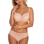 Eleganckie figi o pełnym kroju. Przód wykonany jest haftu na siateczce oraz wzorzystego, satynowego materiału. Tył wykonany jest z błyszczącej dzianiny.