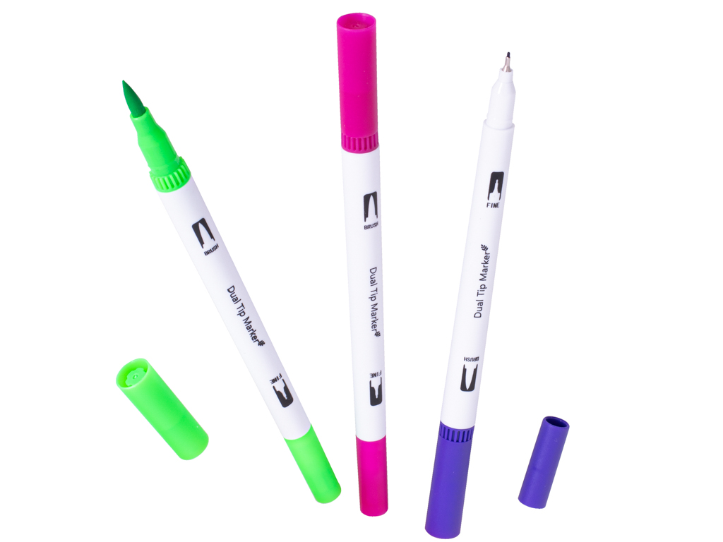 z pisaków posiada dwie końcówki na dwóch końcach – z jednej strony znajduje się