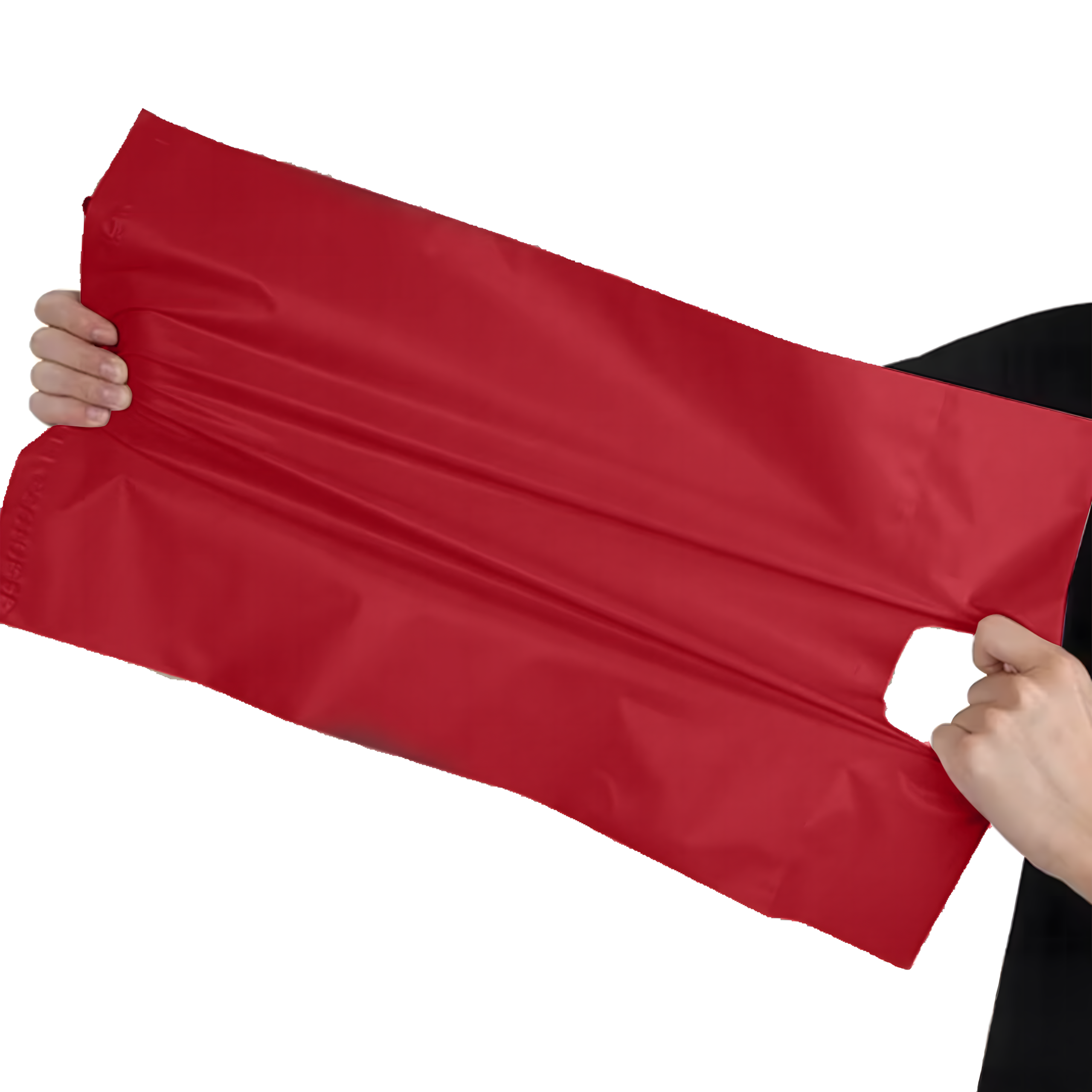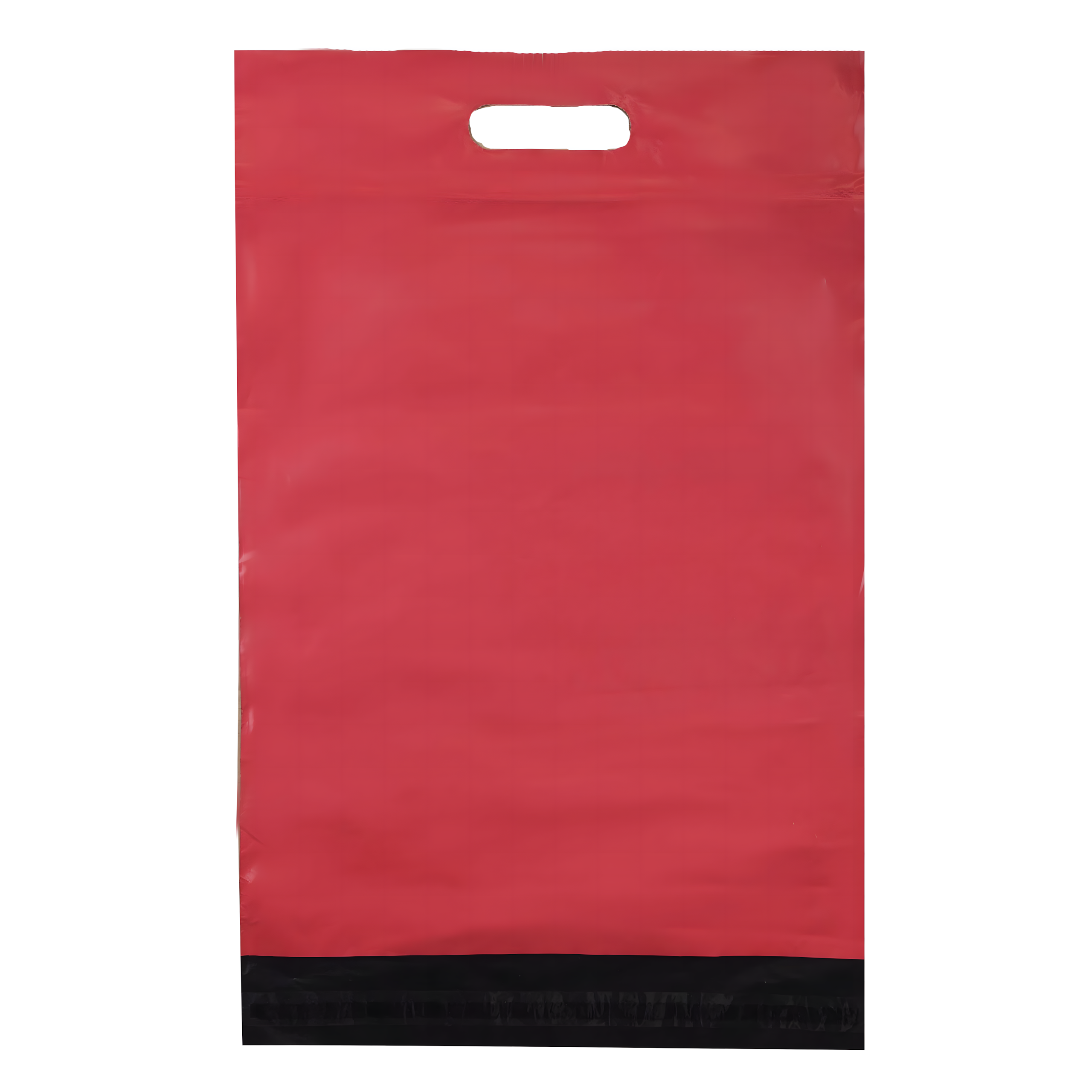 Oferujemy opakowania zbiorcze zawierające 50 sztuk wytrzymałych foliopaków kurierskich. Te koperty kurierskie charakteryzują się rozmiarem 310 x 420 mm + 70 mm rączka oraz eleganckim czerwonym kolorem z zewnątrz.