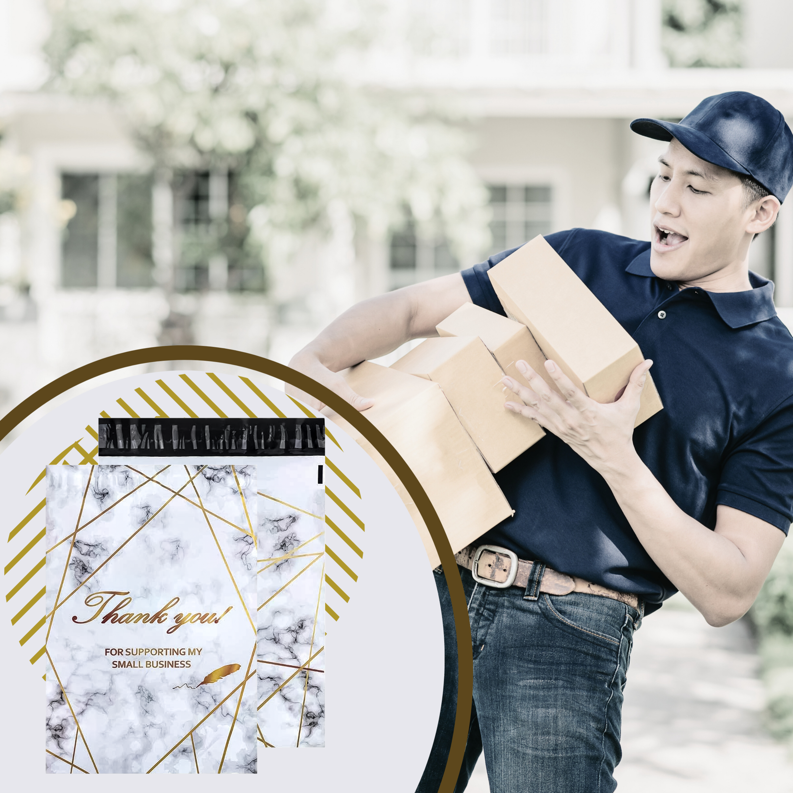 FOLIOPAKI KURIERSKIE ZŁOTE WZÓR MARMUR 255 x 370 mm 50szt THANK YOU