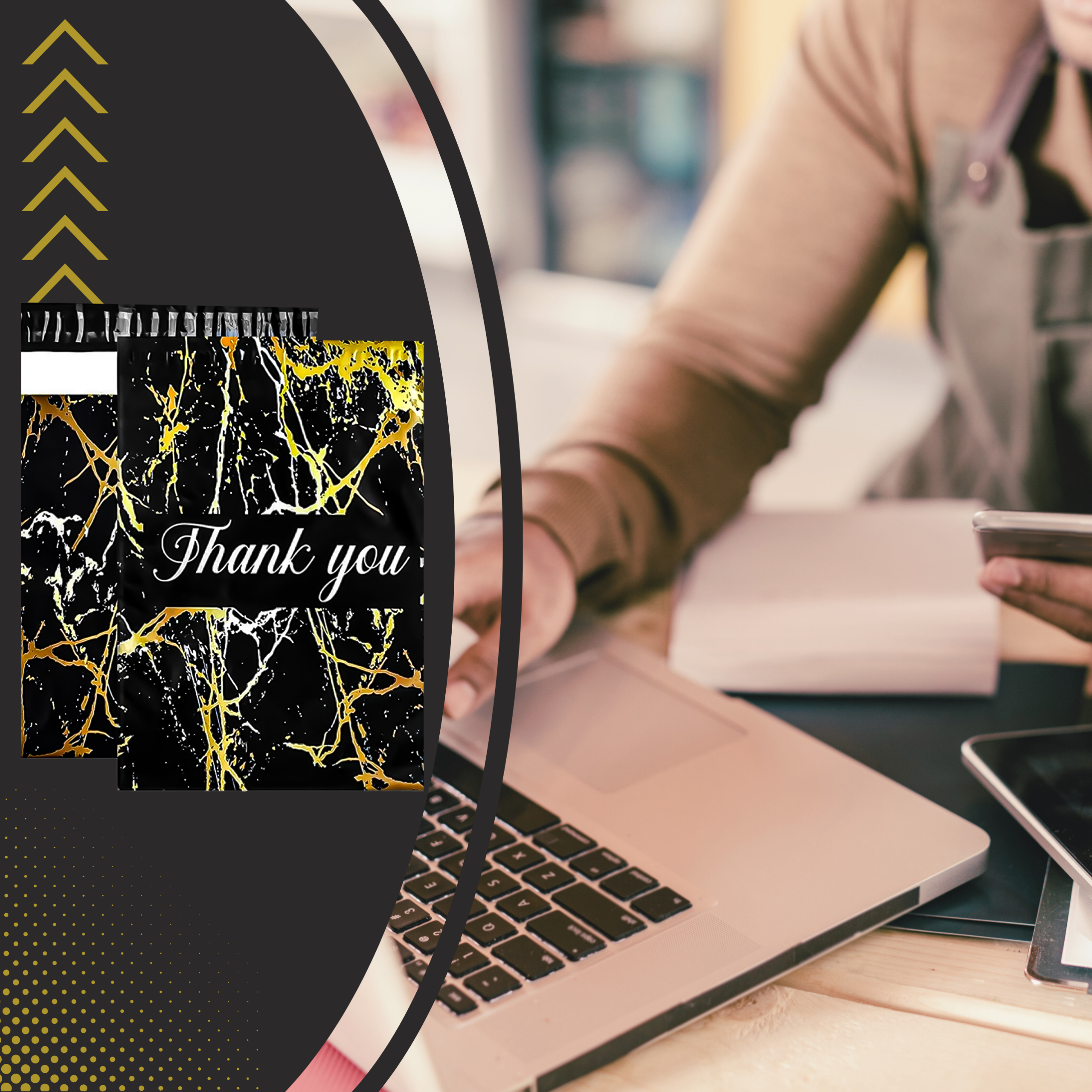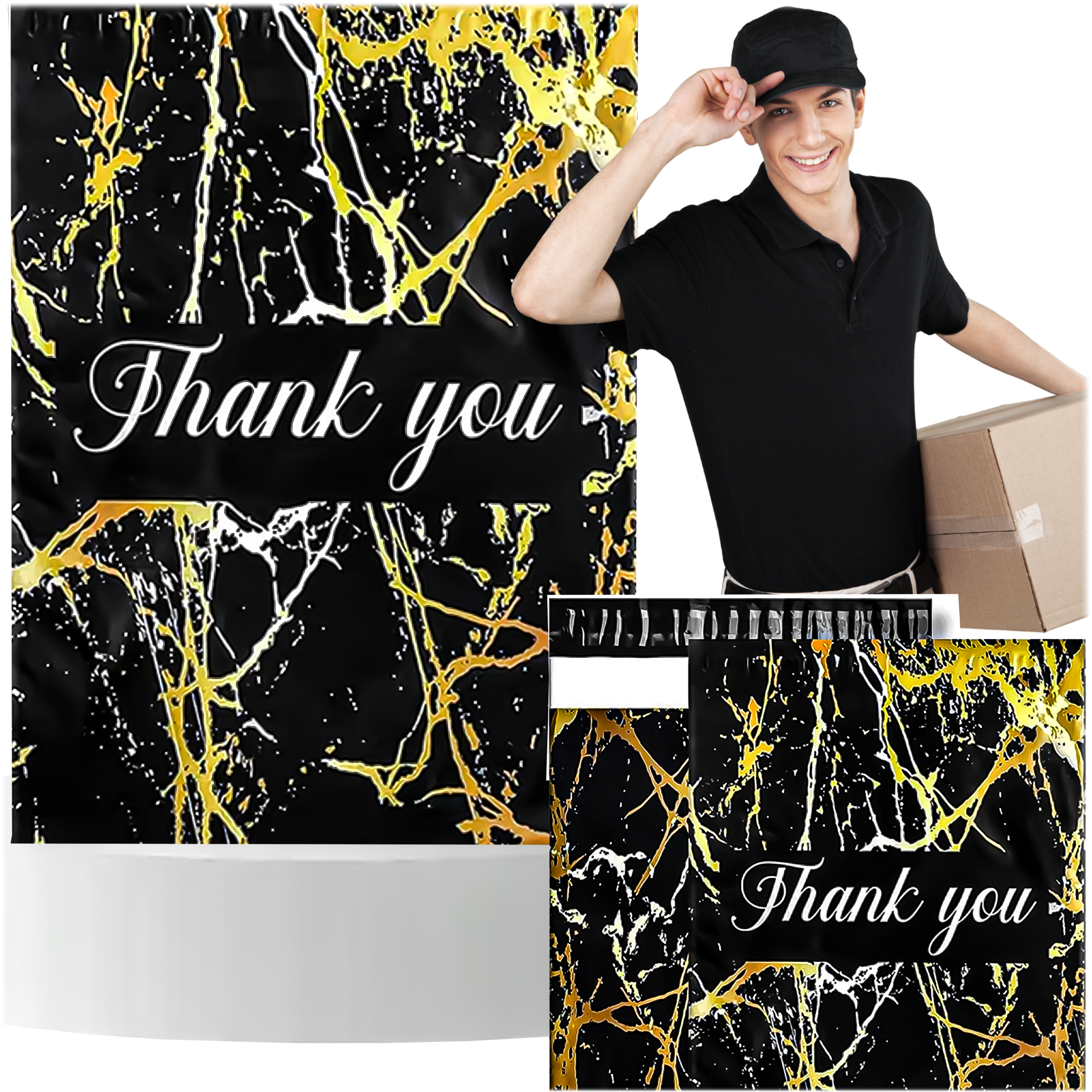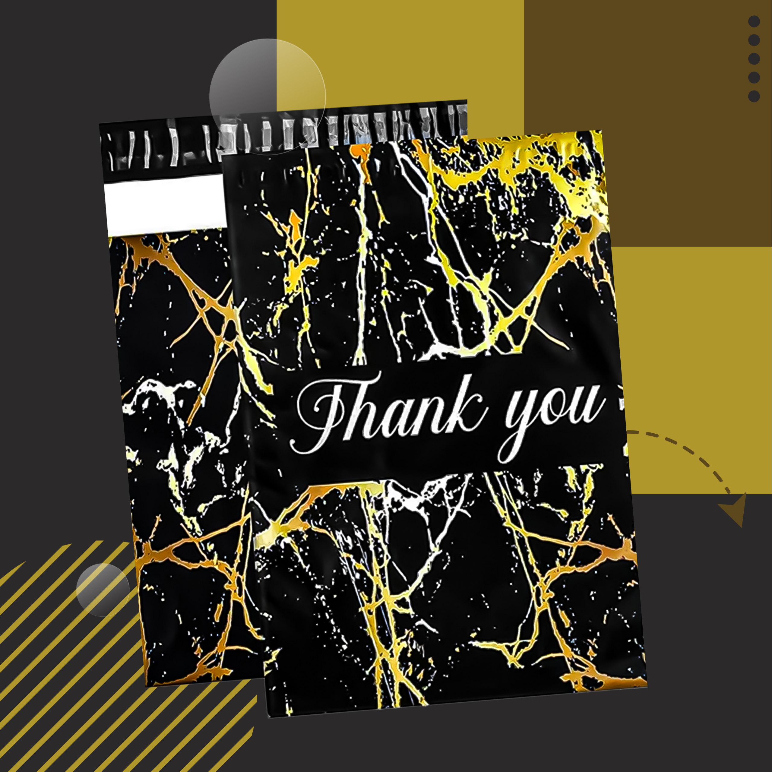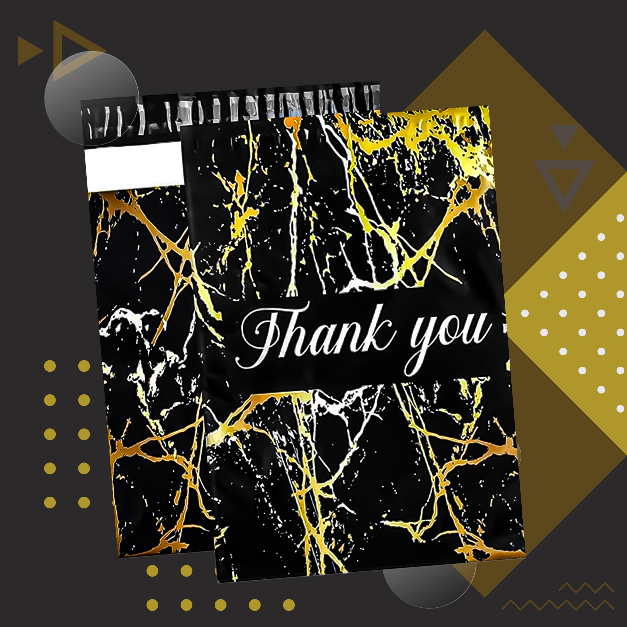FOLIOPAKI KURIERSKIE MOCNE 255X370 ZŁOTY MARMUR THANK YOU 50SZT.