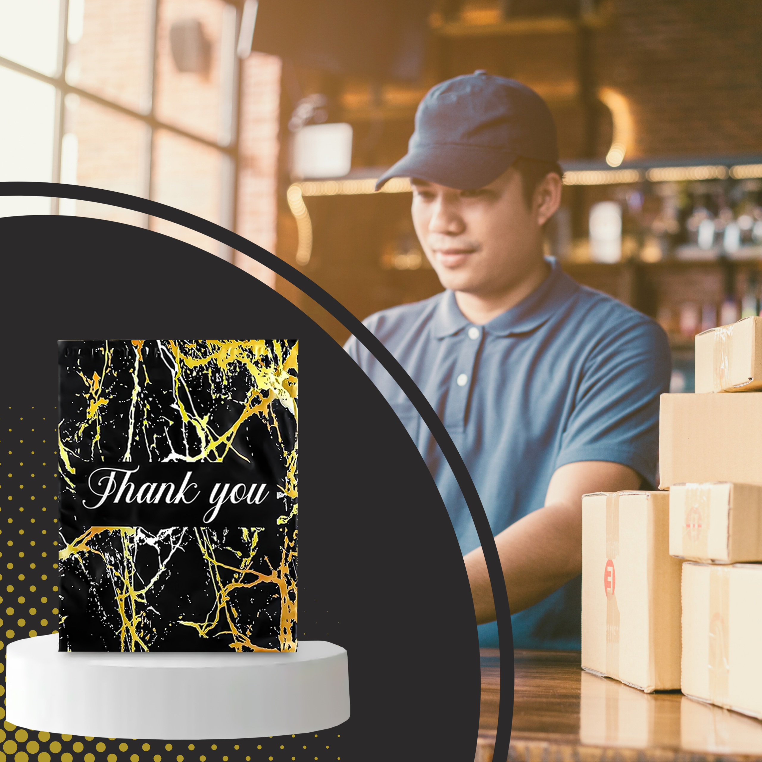 Na naszej aukcji znajdziesz wysokiej jakości foliopaki kurierskie, idealne do pakowania i bezpiecznej wysyłki Twoich produktów. Oferujemy opakowania zbiorcze zawierające 50 sztuk wytrzymałych foliopaków kurierskich.Te koperty kurierskie charakteryzują się rozmiarem 255 x 370 mm oraz eleganckim czarnym kolorem z zewnątrz z napisem Thank You.