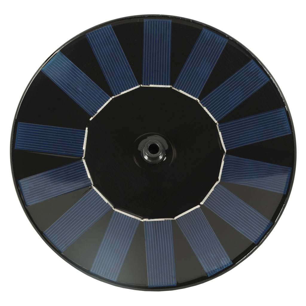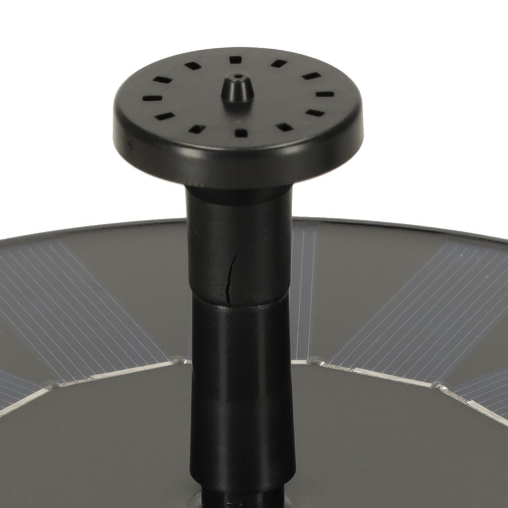 Fontanna solarna upiększy ogród i poprawi jakość wody w zbiorniku. Ma wymienne dysze, wypuszczające różnej długości strumień wody. Świetny wybór do stawów i oczek wodnych. Wymiary: 16 cm x 3 cm, kolor: czarny