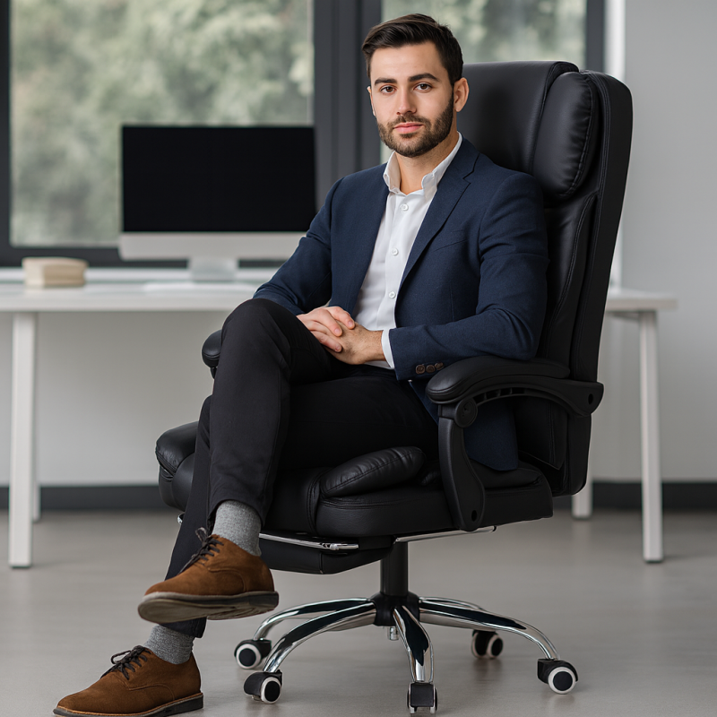 Fotel biurowy obrotowy MASTER PRESTIGE, podnóżek i masażer- ecoskóra czarny KO42CZ