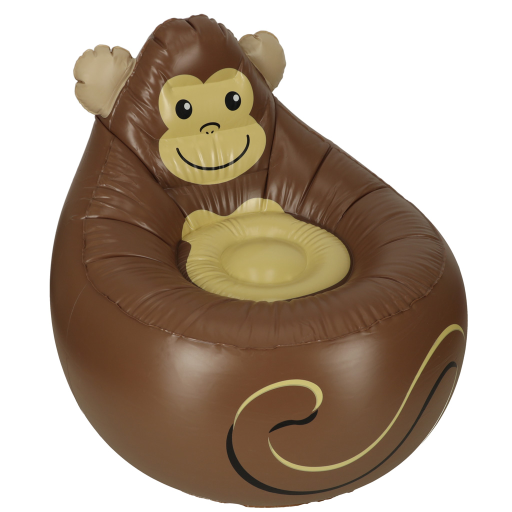 Dmuchany fotel dla dzieci. Ciekawy wzór małpki przykuje uwagę dzieci i będzie doskonałym dodatkiem dziecięcego pokoju. Maksymalne obciążenie: 70 kg. Wymiary: 72 cm x 72 cm x 64 cm.