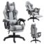 Fotel gamingowy obrotowy STUDENT, podnóżek i poduszka masująca, szary KO23SZ