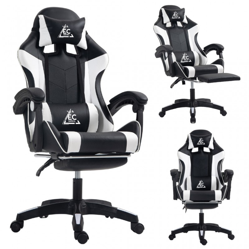 Fotel gamingowy obrotowy z podnóżkiem EC GAMING masażer KO24B