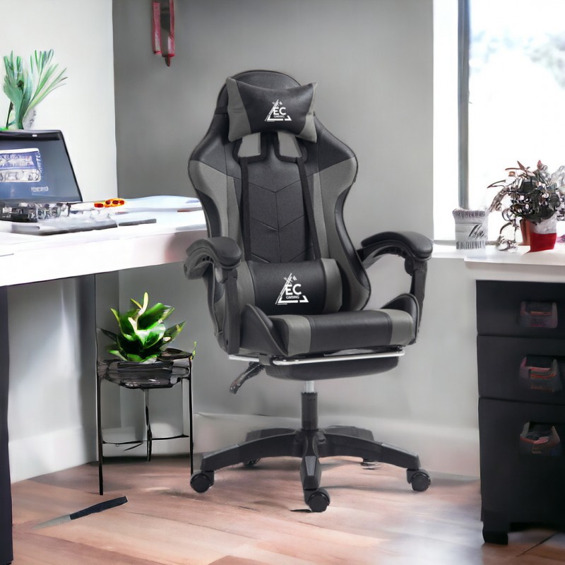 Fotel gamingowy obrotowy z podnóżkiem EC GAMING masażer KO24SZ