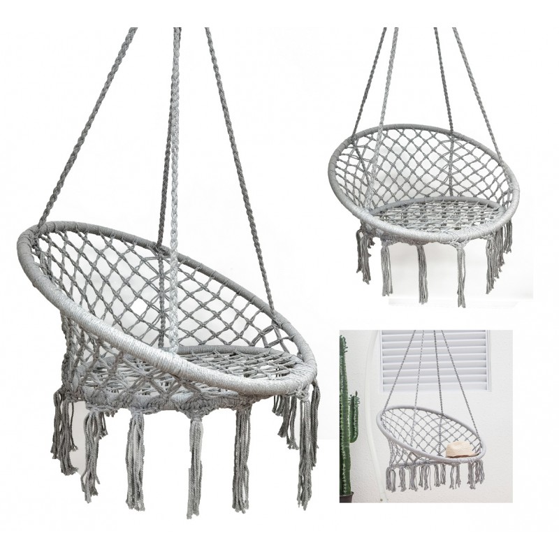 Fotel wiszący bocianie gniazdo hamak BOHO, huśtawka z poduszką Szara KR33SZ