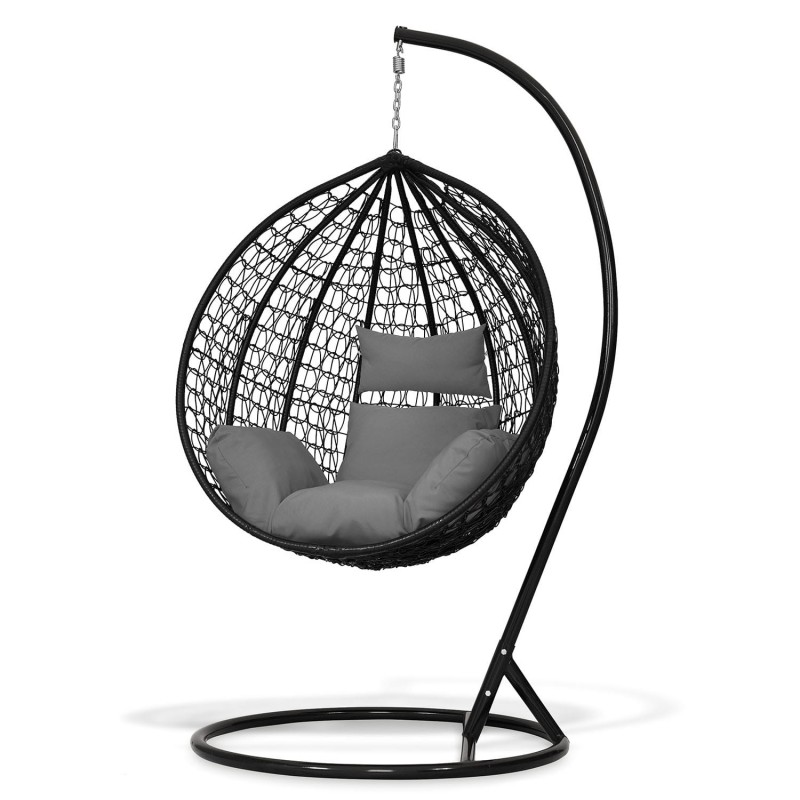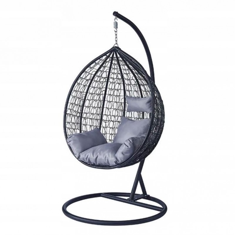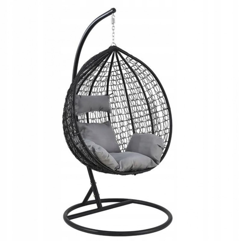 Fotel wiszący, huśtawka kokon czarny z grafitowymi poduszkami KR23