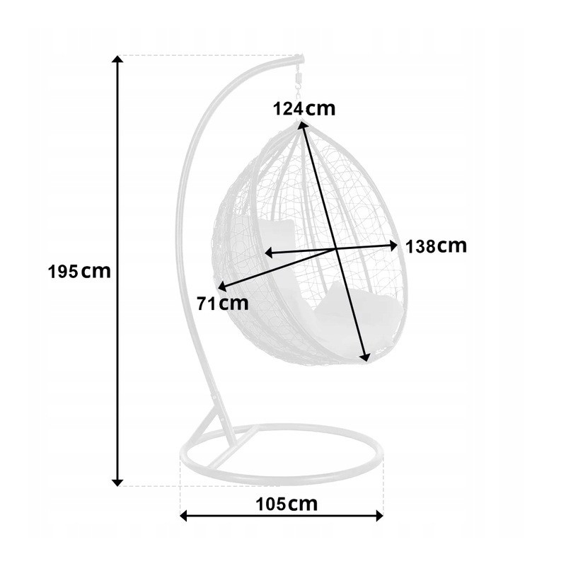– Fotel podwieszany jest na metalowym łańcuchu. Siedząc na nim masz możliwość delikatnego bujania się. Dzięki temu odczujesz jeszcze większą przyjemność z użytkowania. Wymiary kokonu: