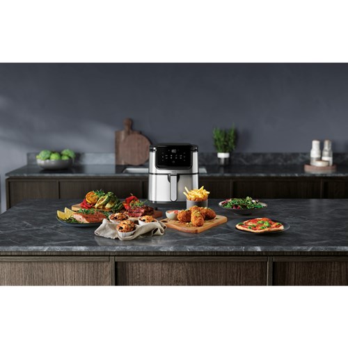 Typ produktu: Frytkownica na gorące powietrze • Kolor: Czarny, Stal nierdzewna.