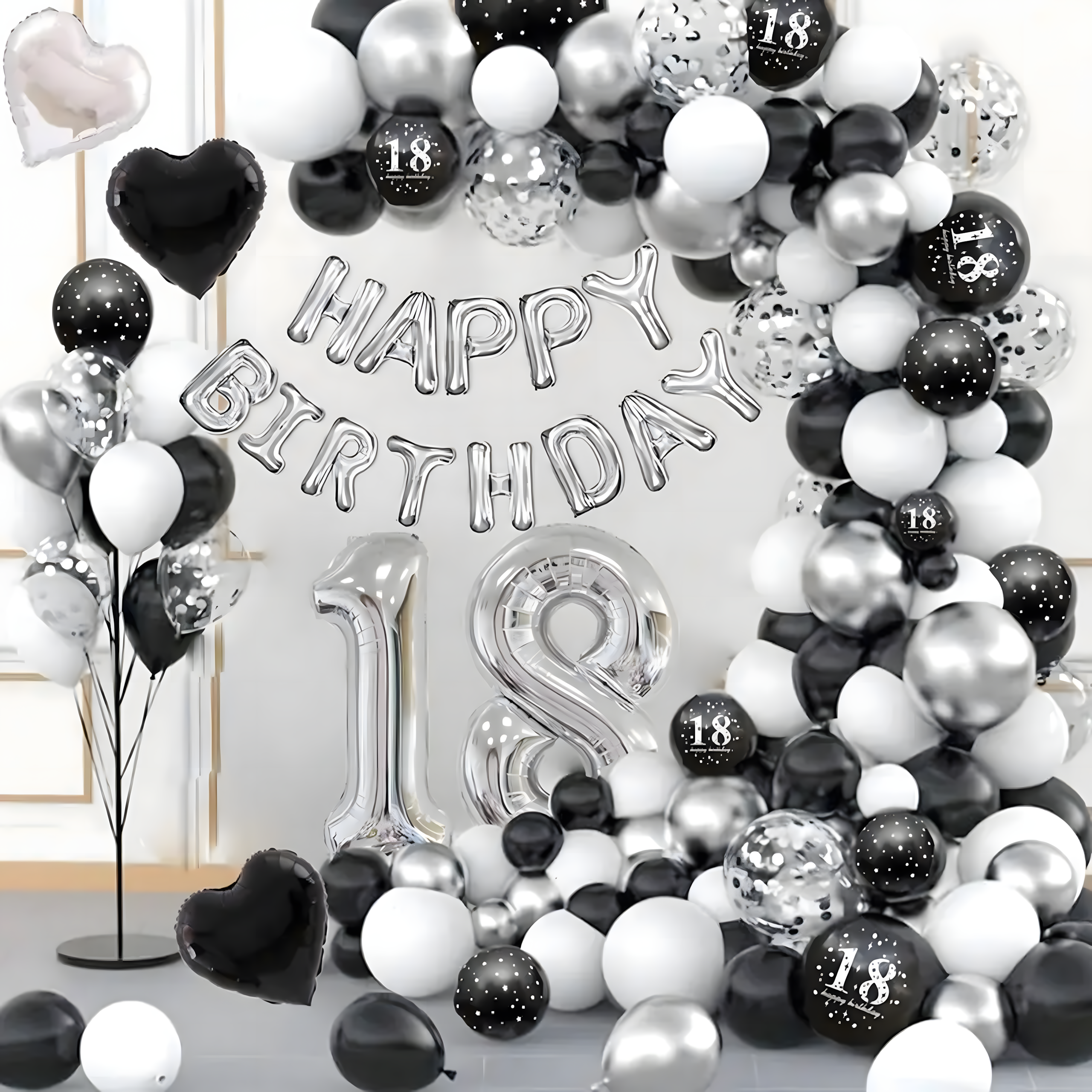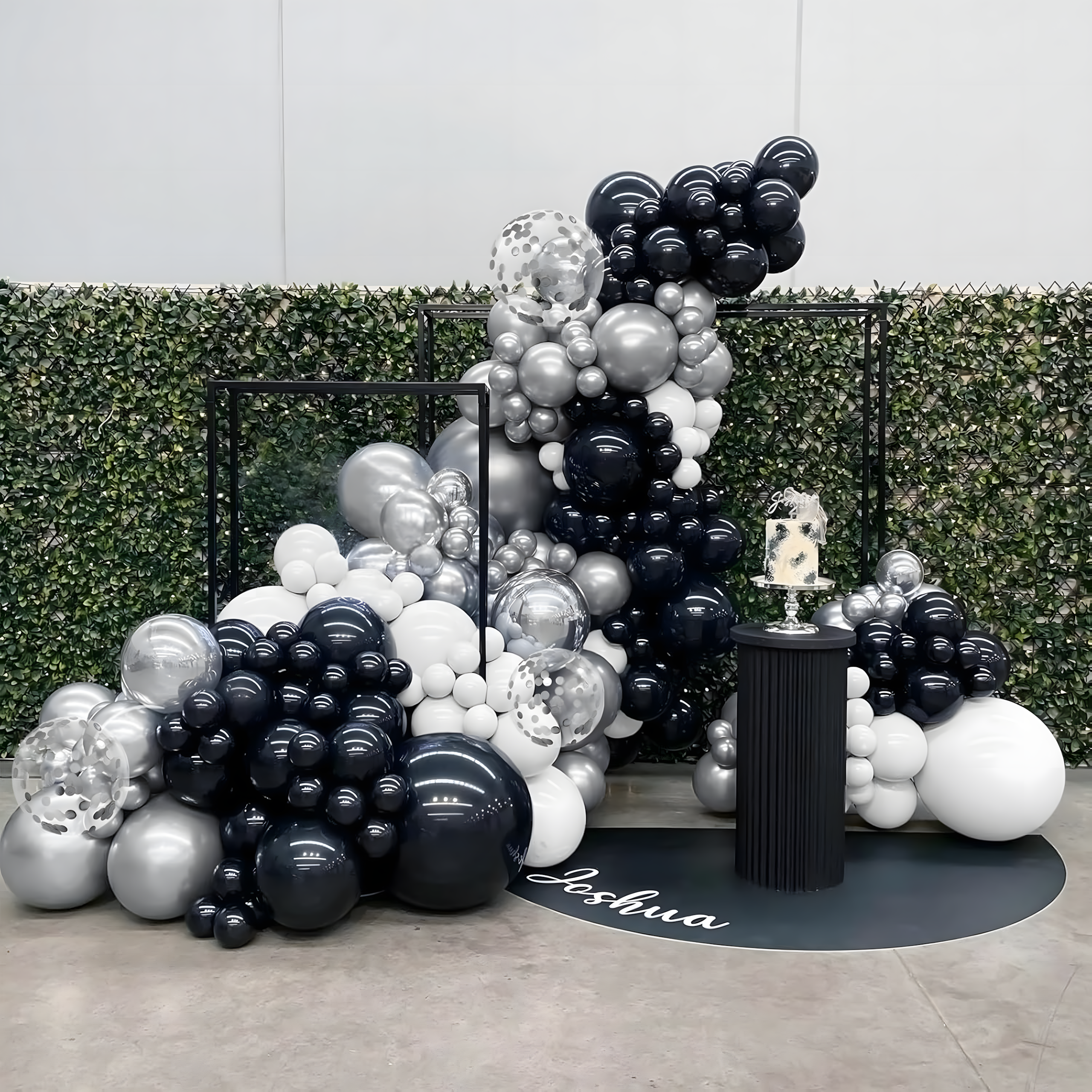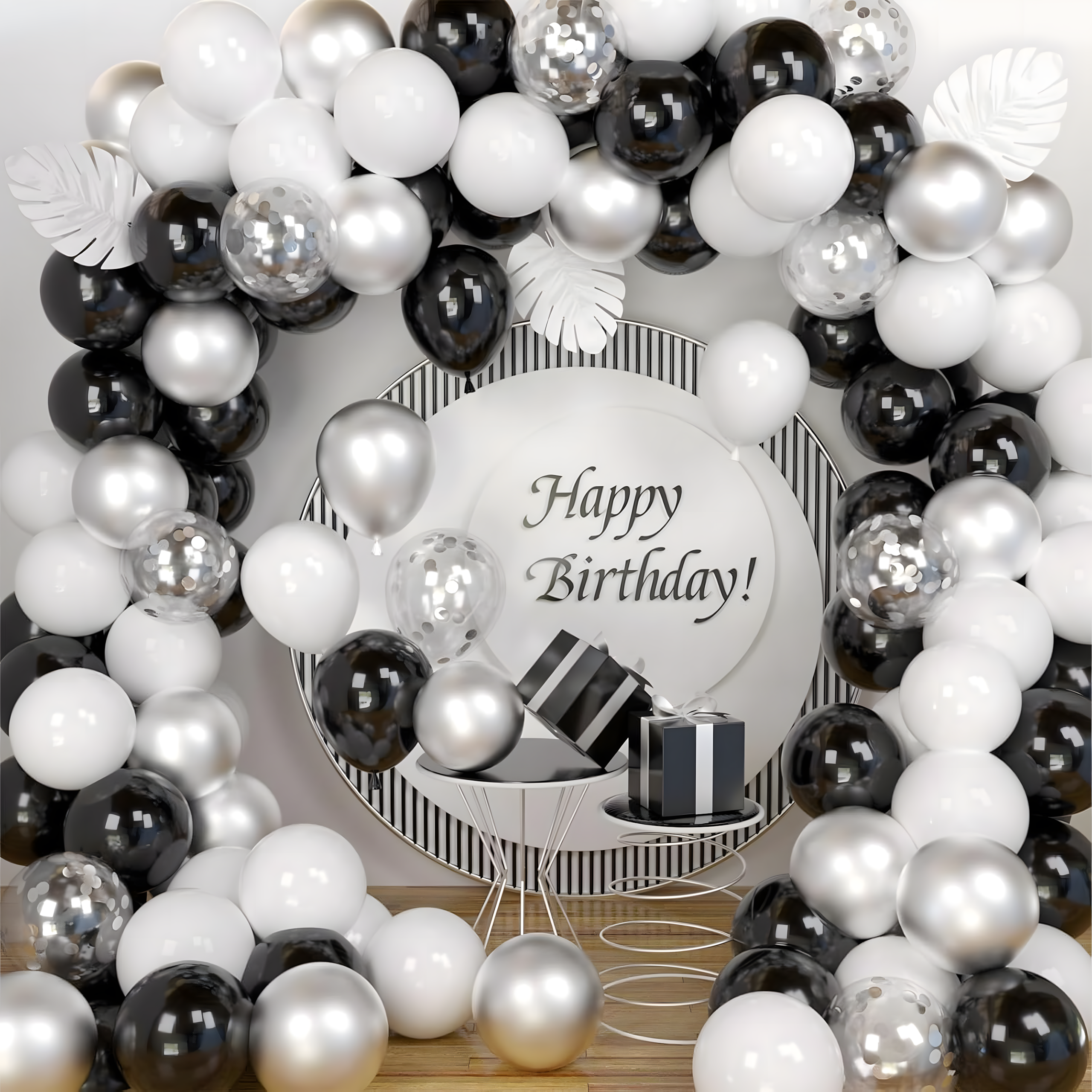 Girlanda Balonowa Zestaw Balonów na Urodziny Czarne Srebrne Białe 107 ele