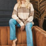 Sweter o grubym splocie. Dekolt wykończony golfem. Sweter z rozszerzanymi rękawami. Krój oversize..