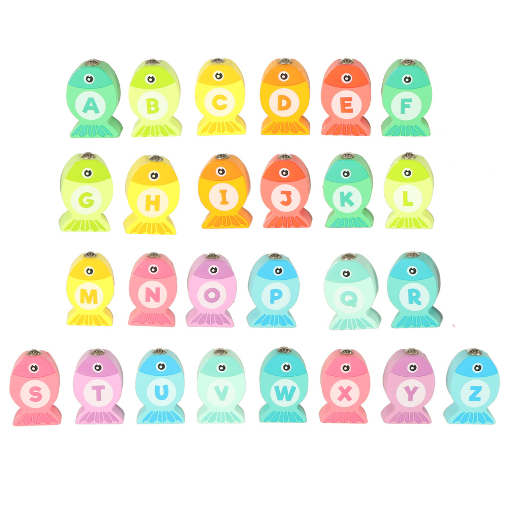 Gra drewniana łowienie rybek. Sprawdzi się podczas nauki liczenia i poznawania kolorów. Doskonale rozwija logiczne myślenie i pamięć wzrokową. W zestawie: 26 rybek, 2 wędki, podstawa. Wym. podstawy: 30x30x0,5cm. Wym. rybki: 4×2,5x1cm.
