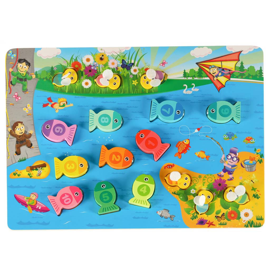 Gra drewniana rybki łowienie rybek na magnes pszczółki montessori