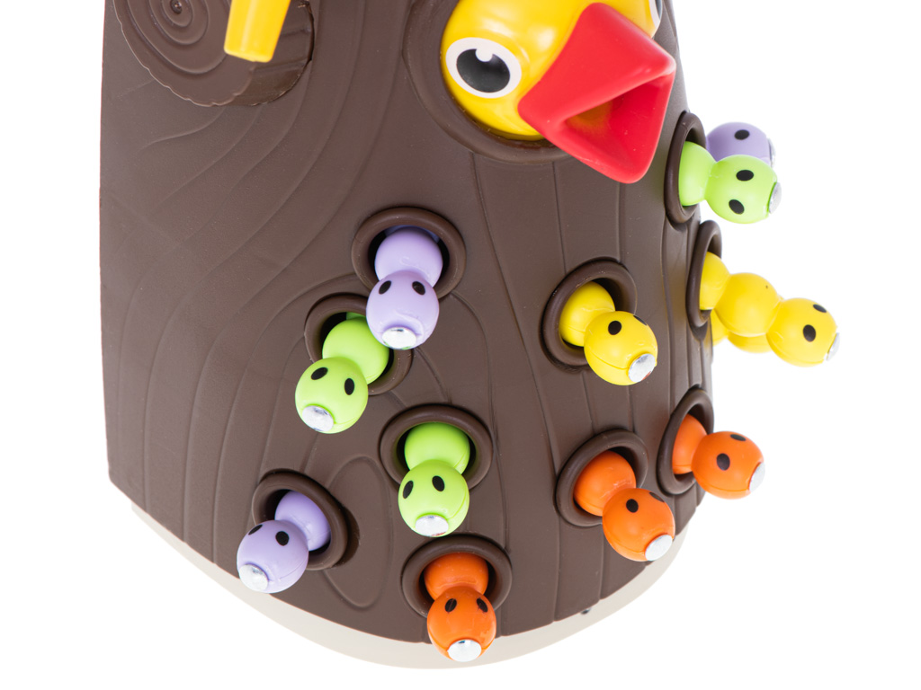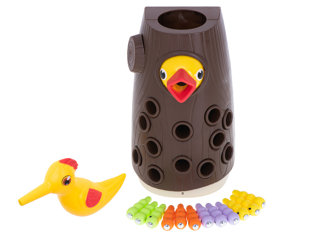 Świetna gra magnetyczna. Polega na łowieniu robaczków i karmieniu ptaszka. Zabawa pozytywnie wpłynie na koordynację wzrokowo-ruchową dziecka. W zestawie: 12 robaczków, drzewko, dzięcioł. Tworzywo: plastik. Dł. robaczka: 4,5cm. Wym. drzewka: 10×8,5×18,5cm.