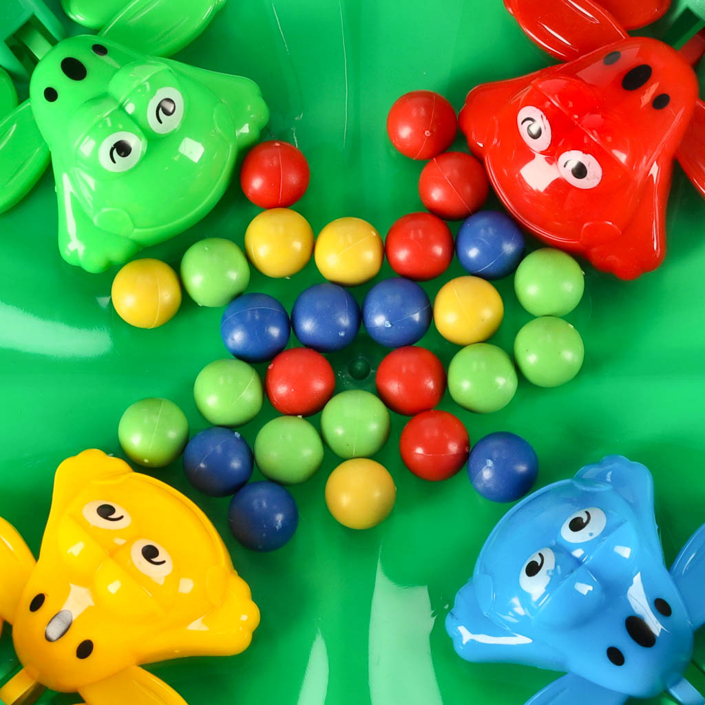 Gra zręcznościowa – głodne żabki. Każdy gracz musi sterować kolorową żabką i postarać się zjeść jak najwięcej kulek. Aby wygrać grę trzeba odpowiedniej strategii i sporej ilości zręczności. Tworzywo: plastik. Wiek: 3+. Wym. planszy: 30,5 cm x 6,6 cm.