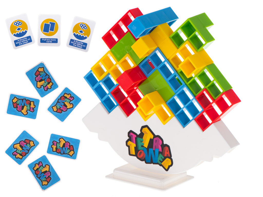 Fantastyczna układanka tetris w nowym wydaniu. Główny cel: nie pozwól aby konstrukcja się zapadła! Gra doskonale rozwinie zdolności manualne i logiczne myślenie. Idealna na rodzinne wieczory. Tworzywo: plastik. Ilość graczy: 1-4. Wym. klocka: 3×4.5×1.5cm.