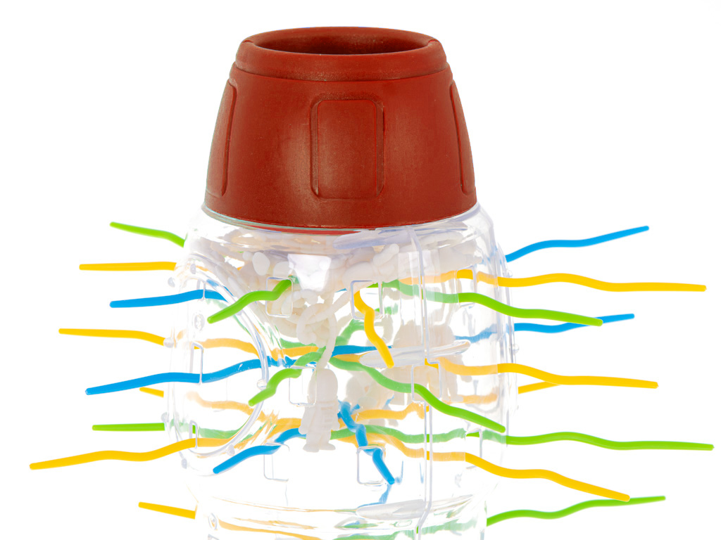 wrzuć kosmonautów przez górny otwór. Celem gry jest wyciąganie patyczków koloru