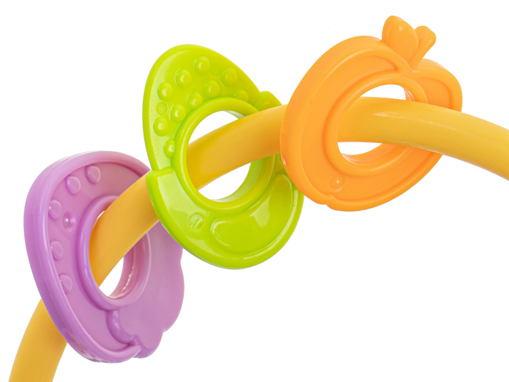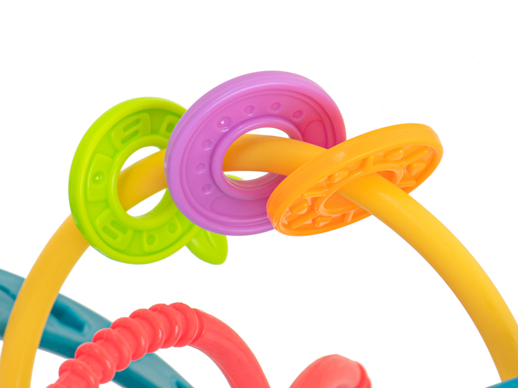 Liczne elementy gryzaka o różnych fakturach gwarantują