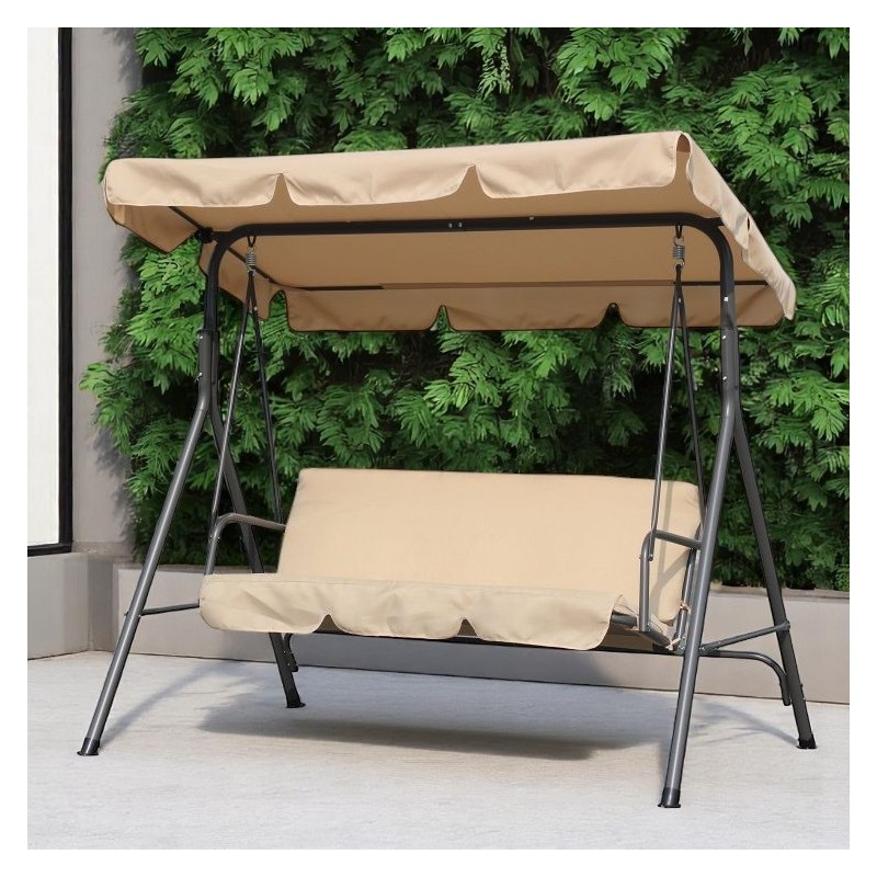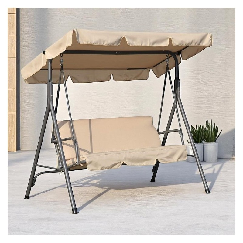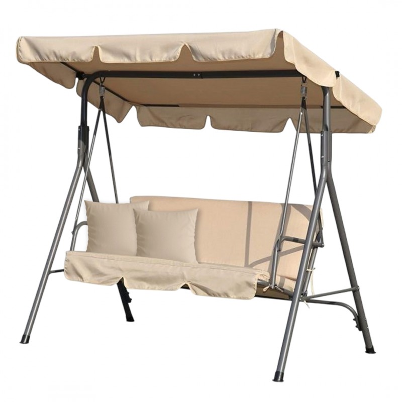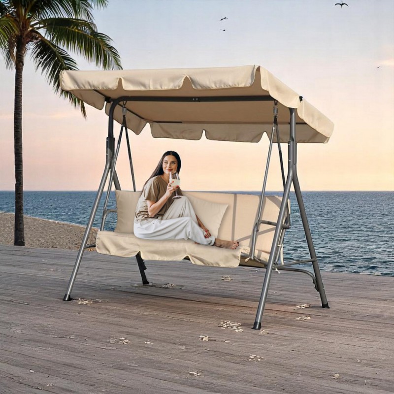 Huśtawka ogrodowa 3-osobowa z baldachimem i 2 poduszkami, beżowa HO01K