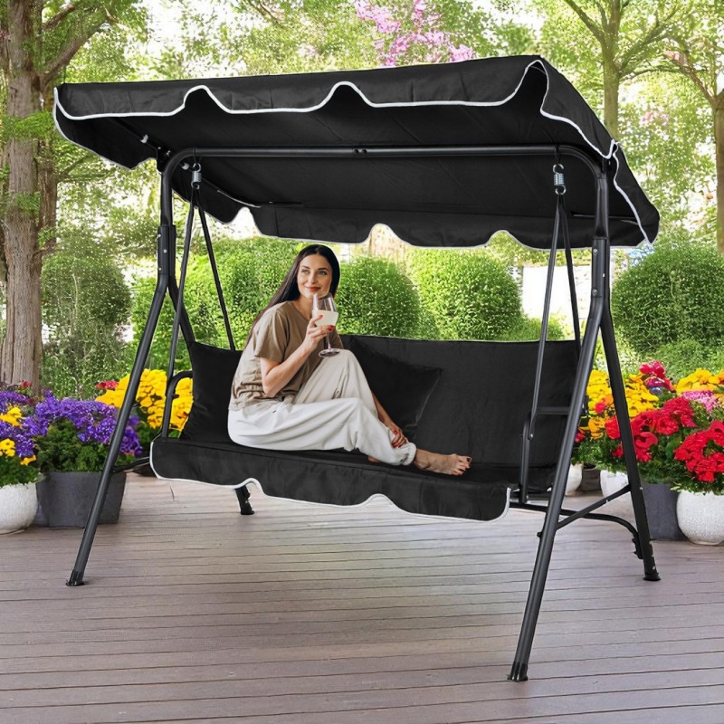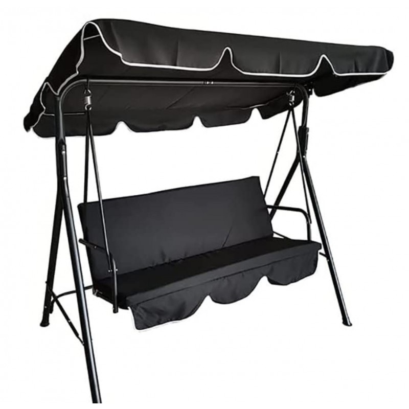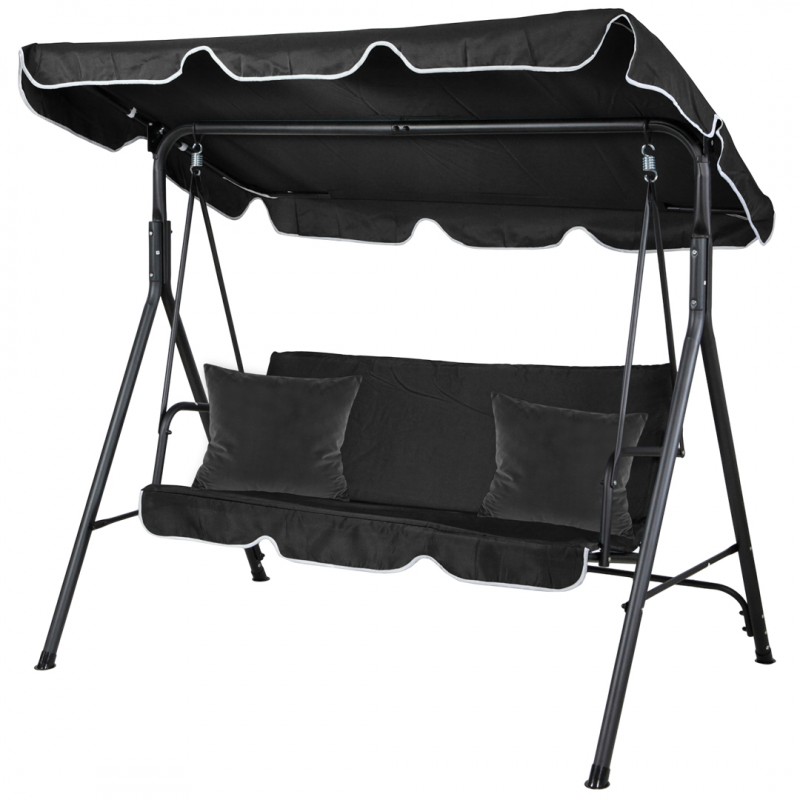 Huśtawka ogrodowa 3-osobowa z baldachimem i 2 poduszkami, czarna HO01CZ