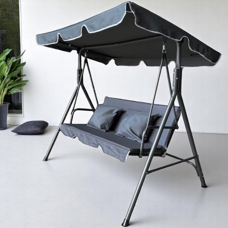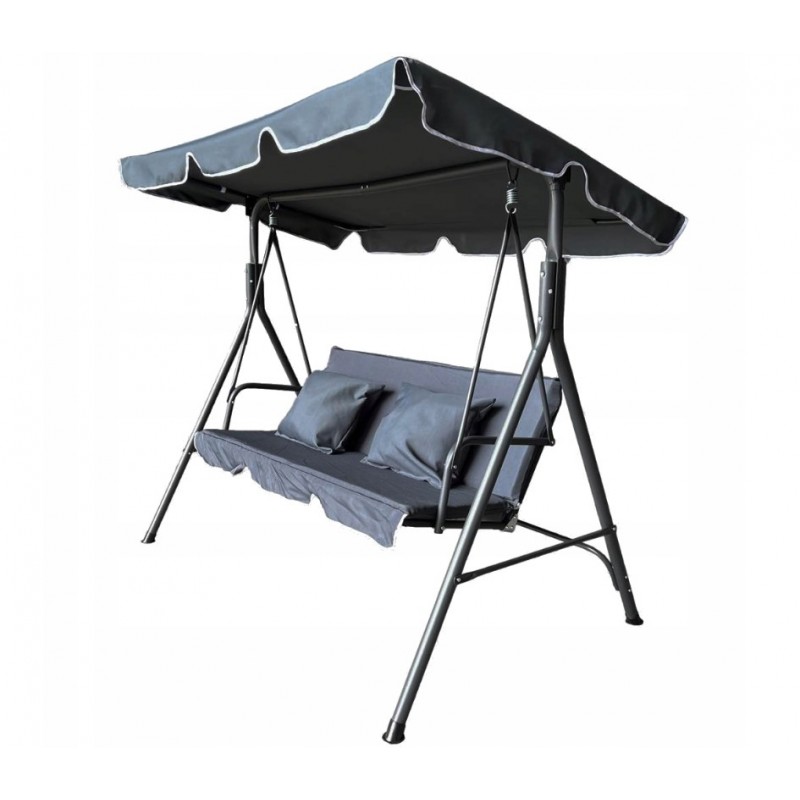 Huśtawka ogrodowa 3-osobowa z baldachimem i 2 poduszkami, grafitowa HO01