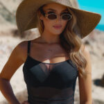 Jednoczęściowy kostium został stworzony z myślą o Paniach szukających modelu wyszczuplającego. Jego klasyczny krój pozwala poczuć się na plaży swobodnie i komfortowo. Miseczki zostały usztywnione delikatną pianką, co zapewnia piersiom odpowiednie wymodelowanie i dobrze je podtrzymuje. O nienaganną stabilność dbają fiszbiny, regulowane ramiączka, dzięki którym dopasujesz strój do swojej sylwetki, a także gumka wszyta tuż pod linią biustu. Ozdobnie przekładane i lekko marszczone pasy tkaniny na miseczkach przyczyniają się do optycznego wyszczuplenia całej sylwetki i skutecznie kryją górne partie brzucha. Możesz jednak w każdej chwili odmienić jego oblicze dzięki wypięciu tradycyjnych ramiączek i włożeniu dodatkowego, dołączonego do stroju, umieszczonego między miseczkami wystarczy, że opleciesz je wokół szyi, a uzyskasz inny charakter kostiumu! Dość nisko osadzoną krawędź miseczek typu half-cup równoważą zabudowane aż do linii obwodu plecy. Całość została wyściełana miękką podszewką wykonaną z elastycznego materiału najwyższej jakości zawierającego włókna lycry. Producent uszył ten model kostiumu do rozmiaru 3XL na miejscu, w Polsce.