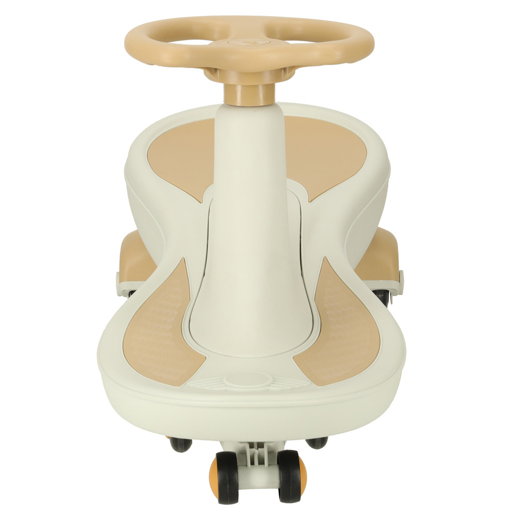 Beżowy jeździk grawitacyjny to gwarancja wyjątkowej zabawy! Aby wyprawić go w ruch trzeba ruszać naprzemiennie kierownicą. Posiada świecące koła i wgraną muzykę. Zasilanie: 3 baterie AAA. Max. obciążenie: 100 kg. Wymiary: 76 cm x 30 cm x 26,5 cm.