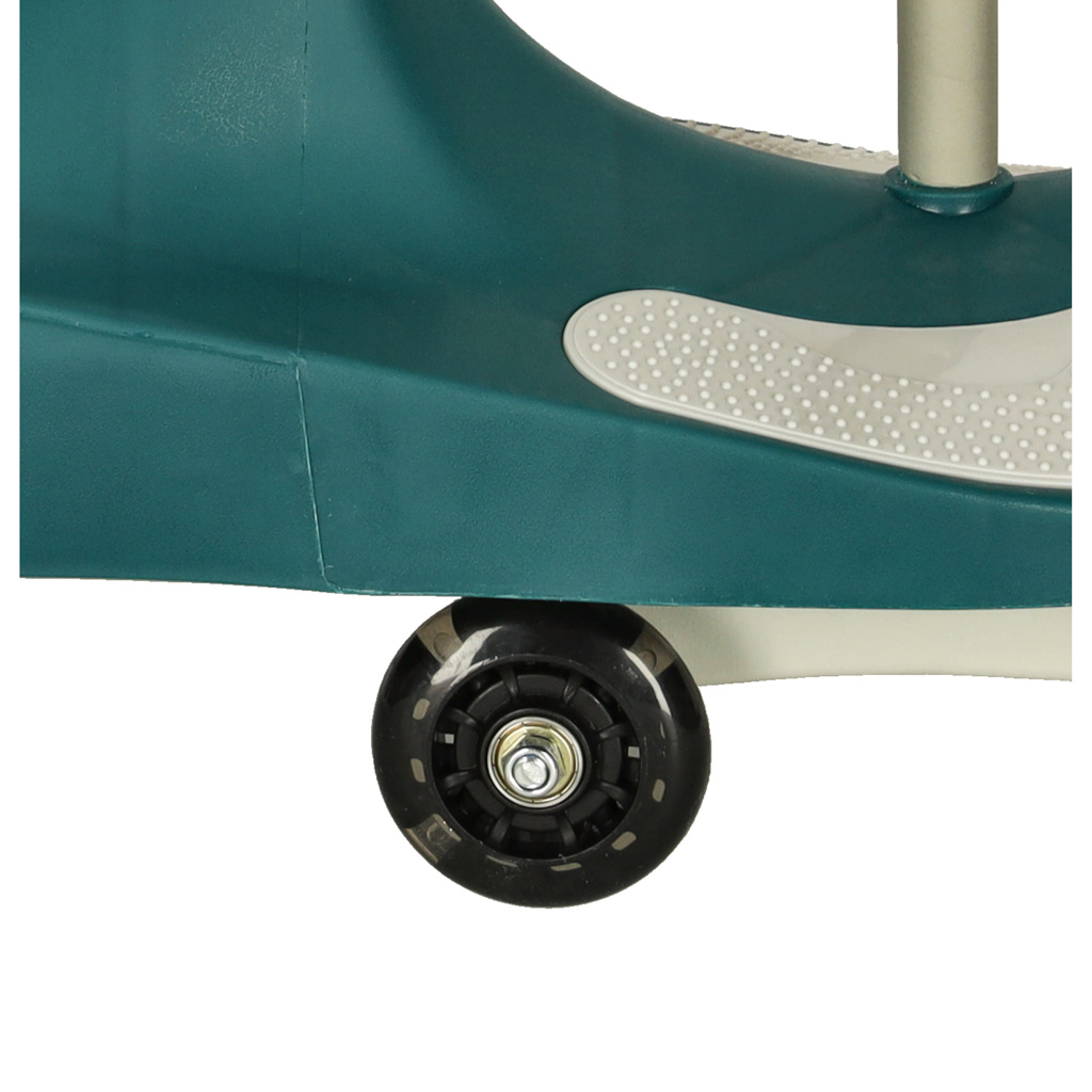 Zielony jeździk grawitacyjny ze świecącymi kołami to gwarancja super zabawy. Aby wprawić pojazd w ruch, wystarczy naprzemiennie poruszać kierownicą – nie trzeba odpychać się nogami. Max. obciążenie: 80 kg. Tworzywo: plastik. Wym.: 79,5 x 29,5 x 40 cm