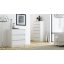 Płyta wiórowa laminowana wyróżnia się odpornością na naprężenia mechaniczne i ekstremalne temperatury, Szuflady – na prowadnicach rolkowych to gwarancja wygodnego, a przede wszystkim bezpiecznego użytkowania., Istnieje możliwość dokupienia oświetlenia szafkowego LED., Bezuchwytowe fronty, Meble do samodzielnego montażu, Gładkie boki bez zaślepek i widocznych otworów, Obrzeża – wykończone tworzywem ABS (charakteryzującym się dużą wytrzymałością mechaniczną i chemiczną), Zdjęcia zestawów przedstawiają przykładową aranżację z innymi meblami z kolekcji. Pozostałe bryły są dostępne w osobnej sprzedaży.