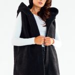 Kamizelka z kapturem wykonana z ciepłego, przyjemnego materiału z kieszeniami. Dzięki neutralnym kolorom w jakich występuje można ją wykorzystać do wielu stylizacji. Świetnie komponuje się spięta skórzanym paskiem oraz z butami w tym samym kolorze. Jej przyjemny materiał zapewnia komfort w chłodniejsze i wietrzne dni. Kamizelka w całości na podszewce. Produkt wyprodukowany w Polsce.