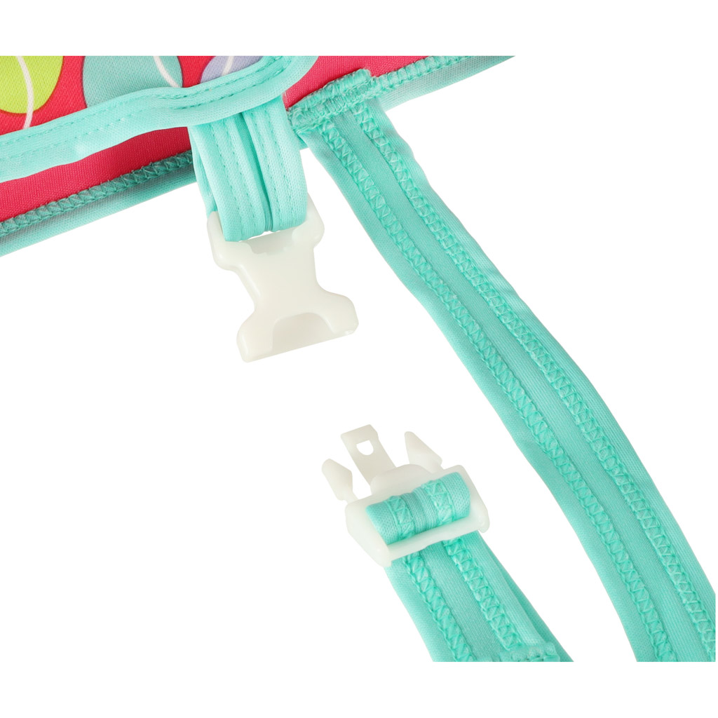 Różowa kamizelka dla dzieci do nauki pływania. Posiada wypełnienie z pianki, dzięki czemu zapewnia doskonałą wyporność. Zapinana na zamek błyskawiczny. Dla dzieci w wieku 1-3 lat. Wymiary: 26 cm x 30 cm.