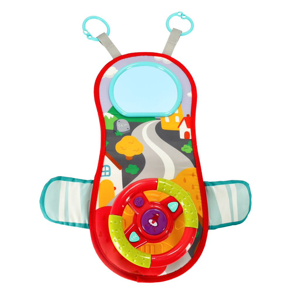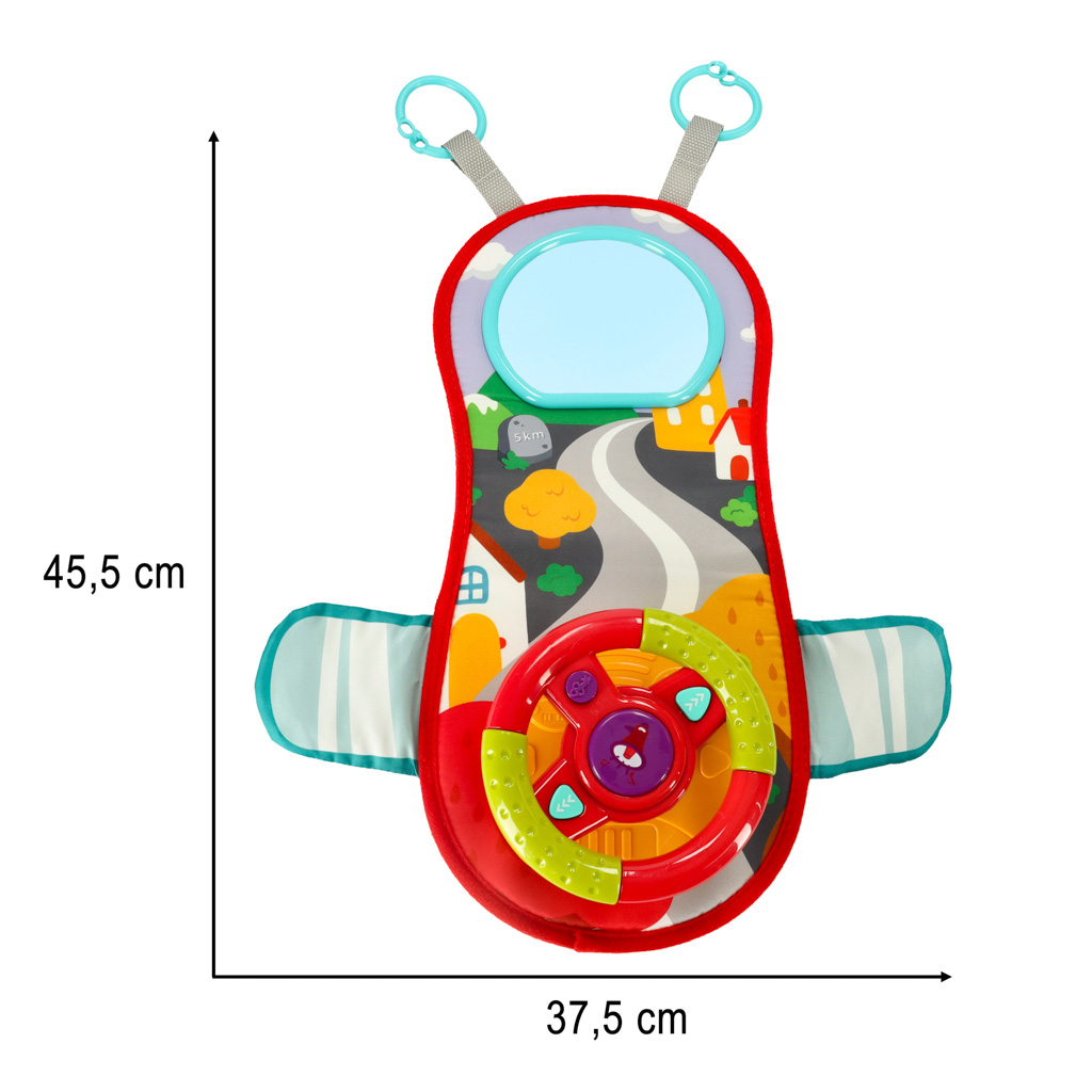 – zabawkę można zamontować na wózku lub siedzeniu fotela samochodowego, aby