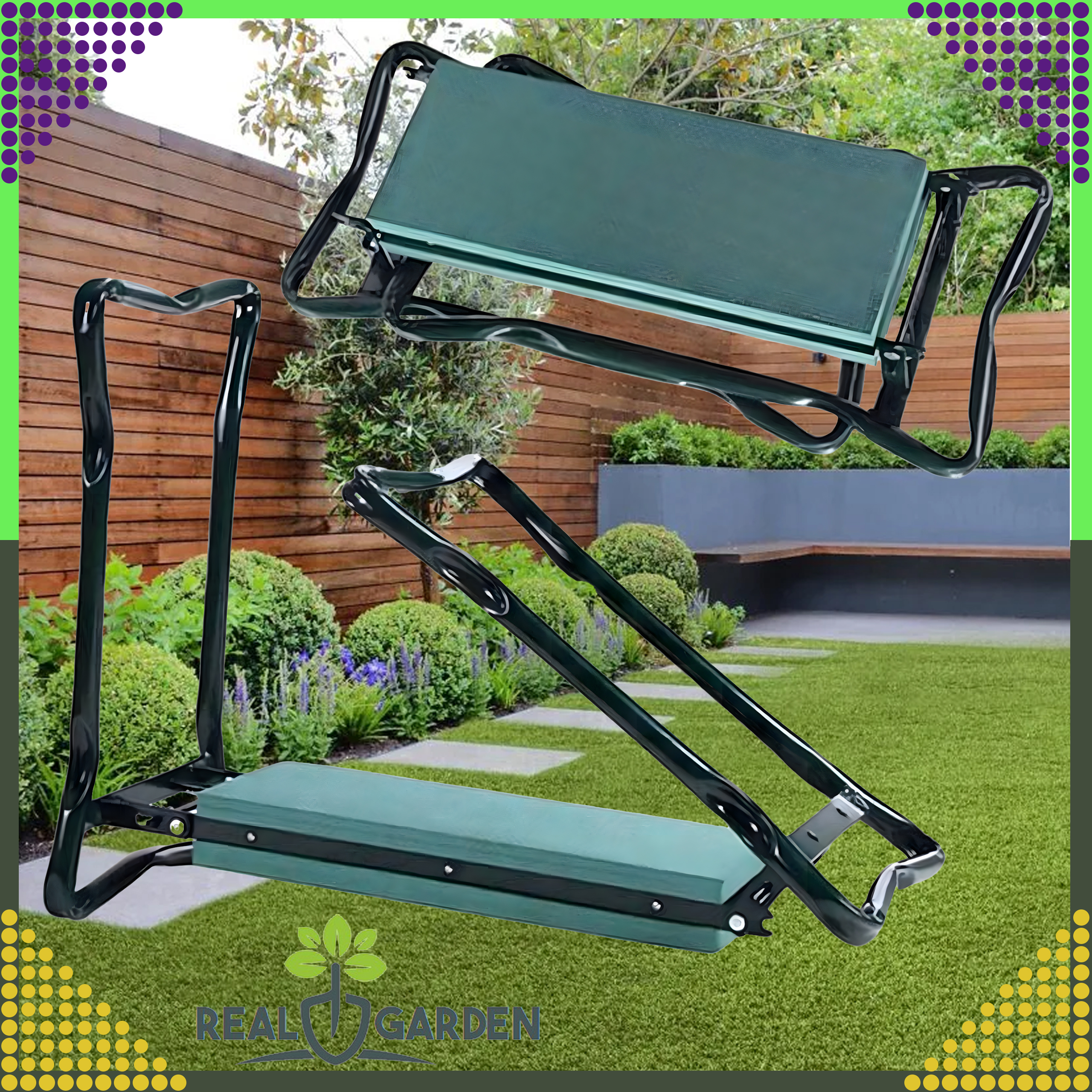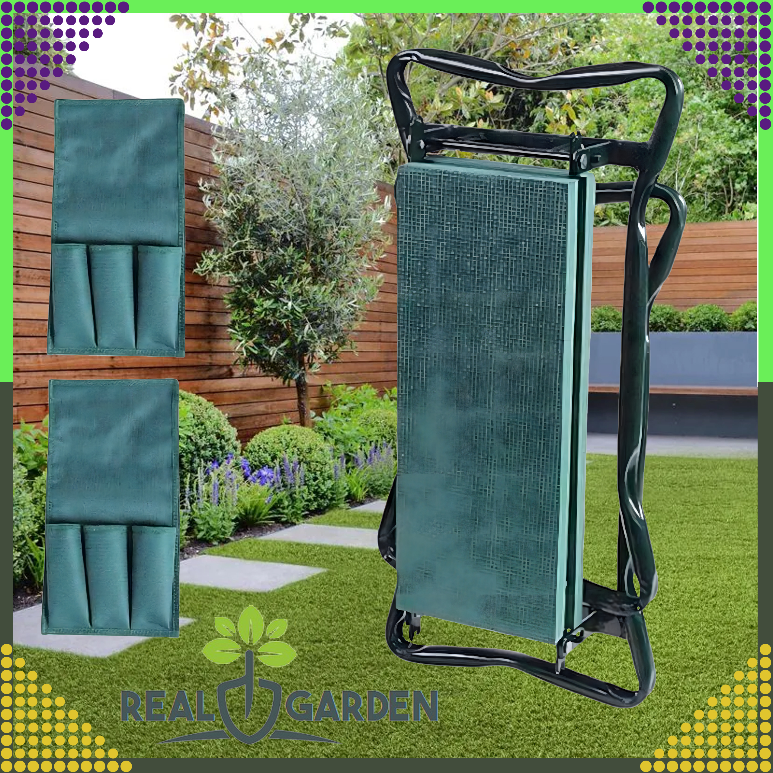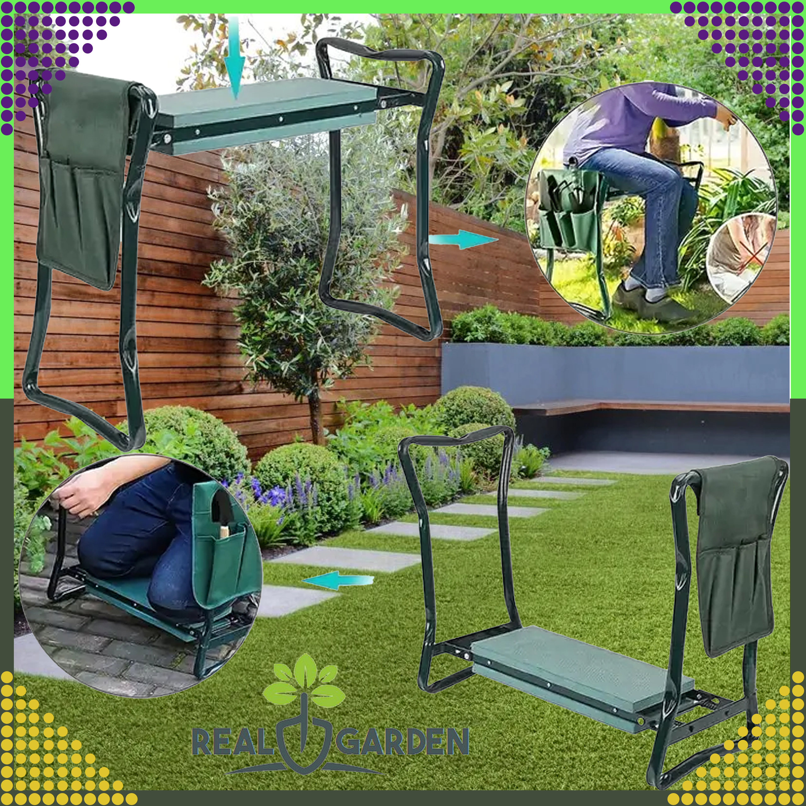 ⭐ KLĘCZNIK OGRODOWY TABORET SKŁADANY WYGODNE KRZESŁO STOŁEK 3w1 + 2 x PRZYBORNIK ⭐