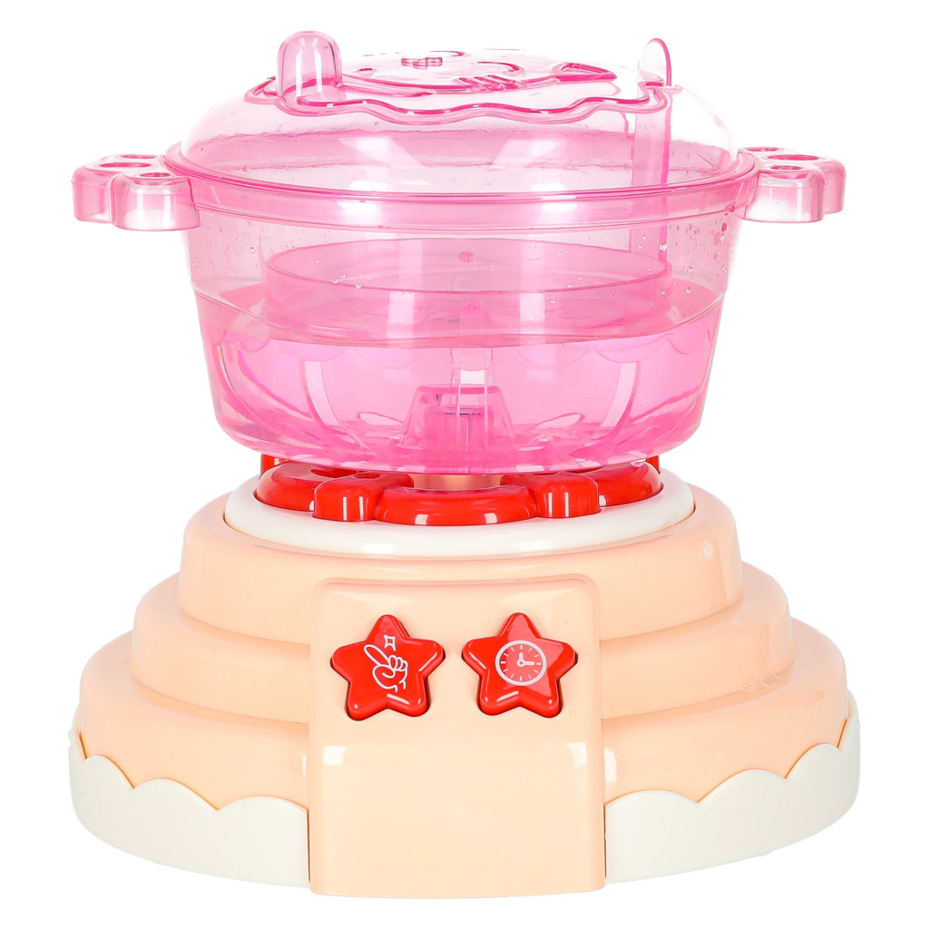 zabawkowym palnikiem, który świeci oraz wydaje odgłosy gotowania. To umożliwia w