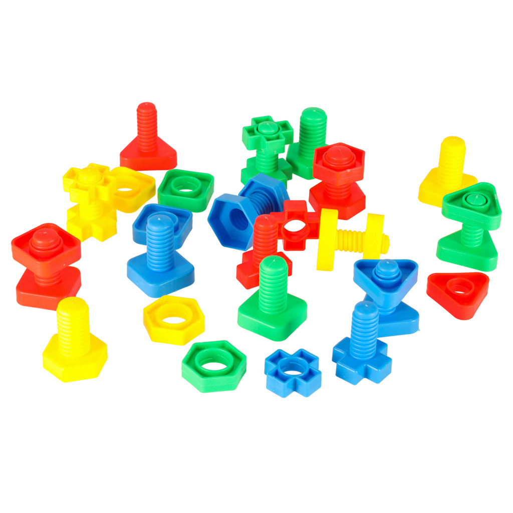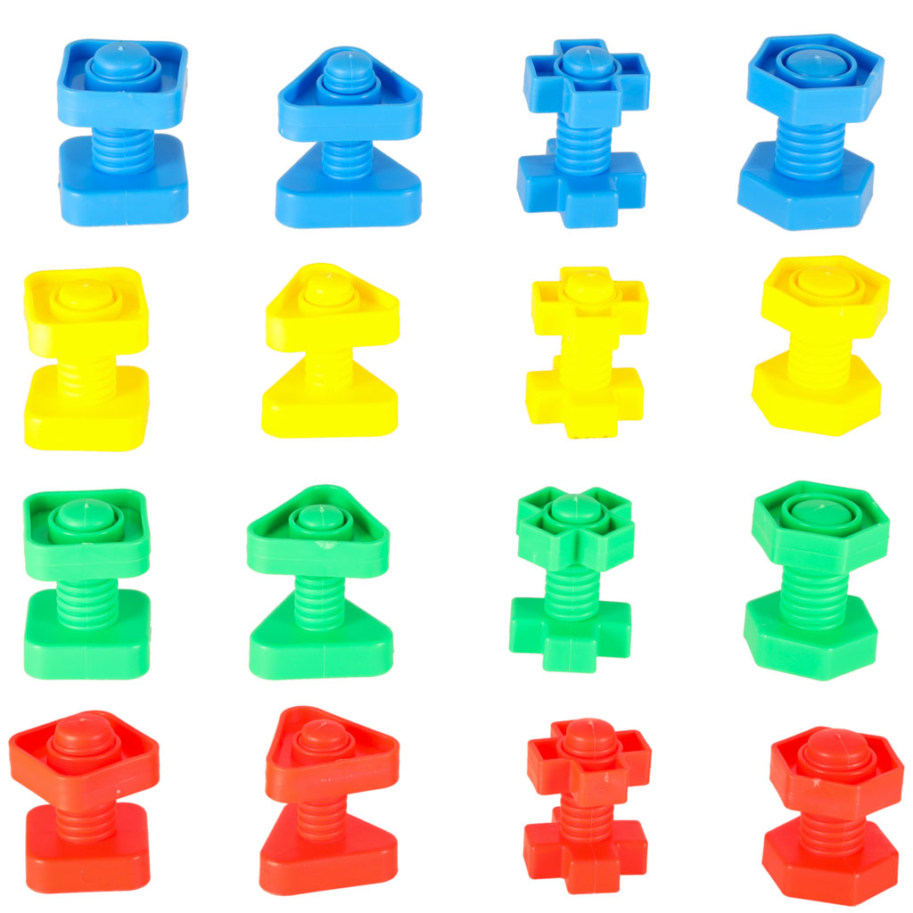 Wieloelementowe klocki w kształcie śrubek.Doskonała zabawka edukacyjna w cudownych kolorach,przeniesie mnóstwo radości i zabawy.W skład zestawu wchodzi 30 elementów:15 śrub,15 nakrętek na śruby.Wysokość śruby: ok 5,5cm.Średnica dołu śrubki: 1,5cm-2cm