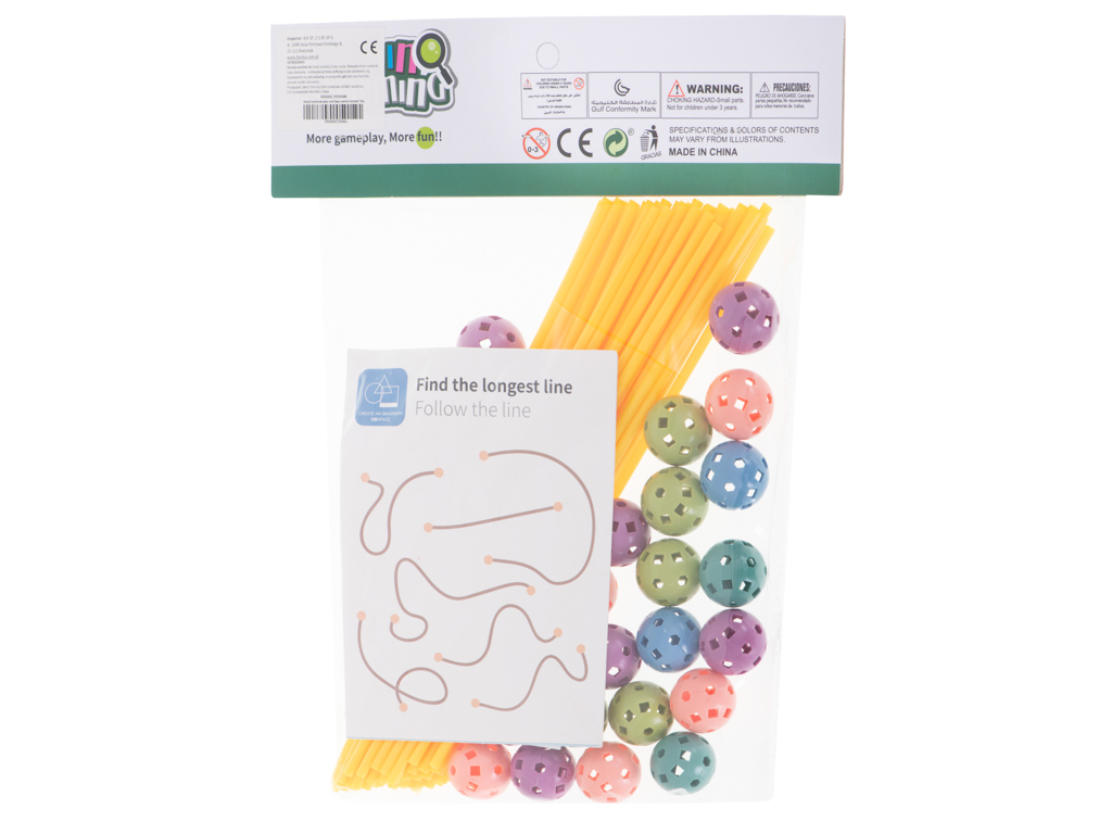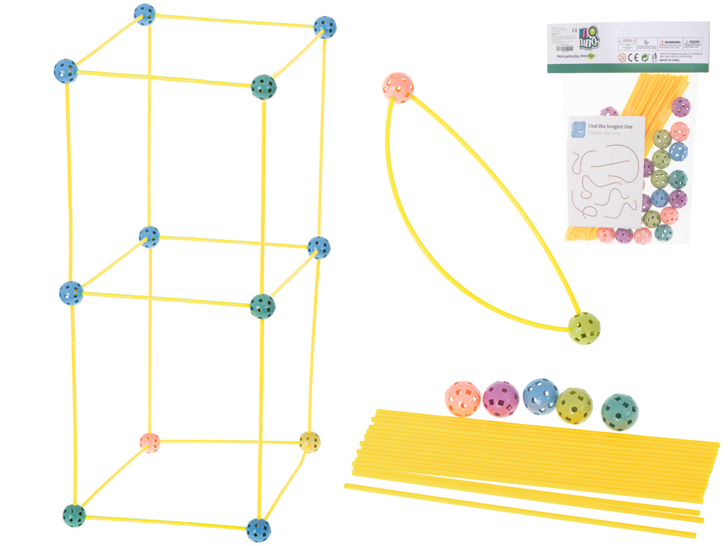 Rewelacyjne klocki konstrukcyjne 75el. Pozwolą na zbudowanie domku, namiotu czy bazy. Klocki doskonale pobudzają wyobraźnię i zachęcają do logicznego myślenia. W zestawie: rurki, kule-łączniki. Dł. rurki: ok. 28cm.