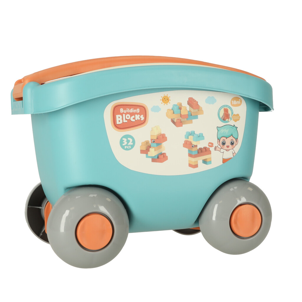 Klocki konstrukcyjne zestaw w wózku pojemniku z pokrywą 32el.