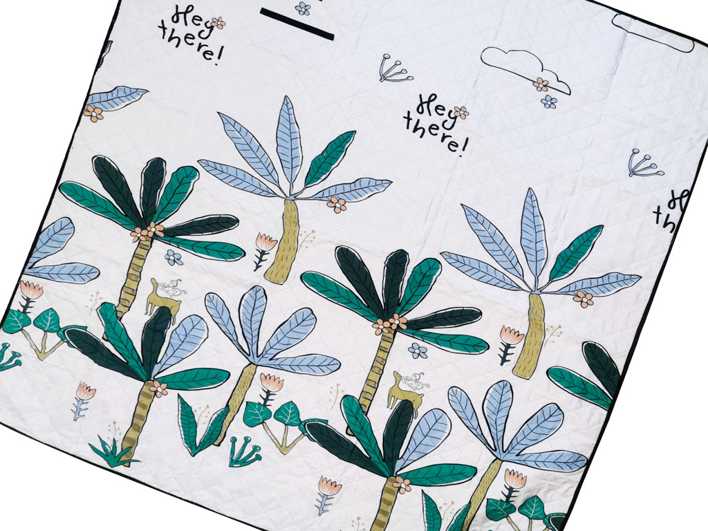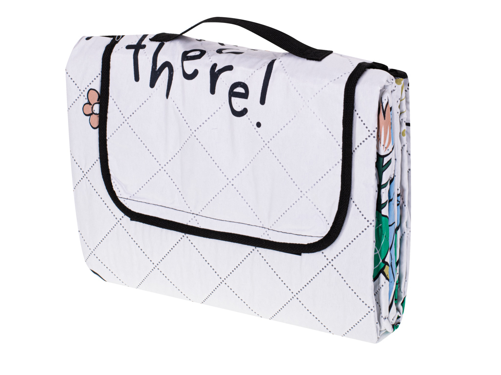Wielofunkcyjna mata plażowa ozdobiona nadrukiem w palmy. Bawełniany wierz zapewni wygodę użytkowania, a wodoodporny spód ochroni przed wilgocią. Idealna na plażę lub do ogrodu. Można ją złożyć do niewielkich rozmiarów i zapiać na rzep. Wymiary: 200x150cm.
