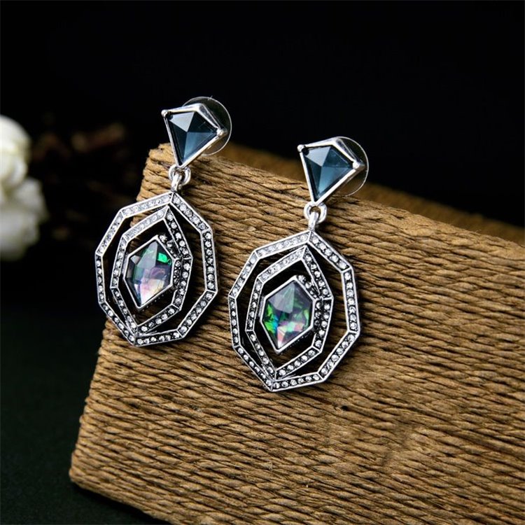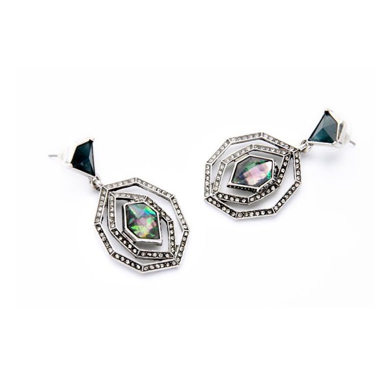 KOLCZYKI BLUE OPAL STONE WYSADZANE KRYSZTAŁKAMI