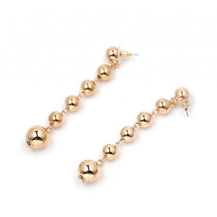 KOLCZYKI DŁUGIE KORALIKI ZŁOTE K638Z
