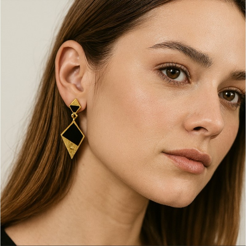 Kolczyki geometryczne romby, czarno złote K943CZ