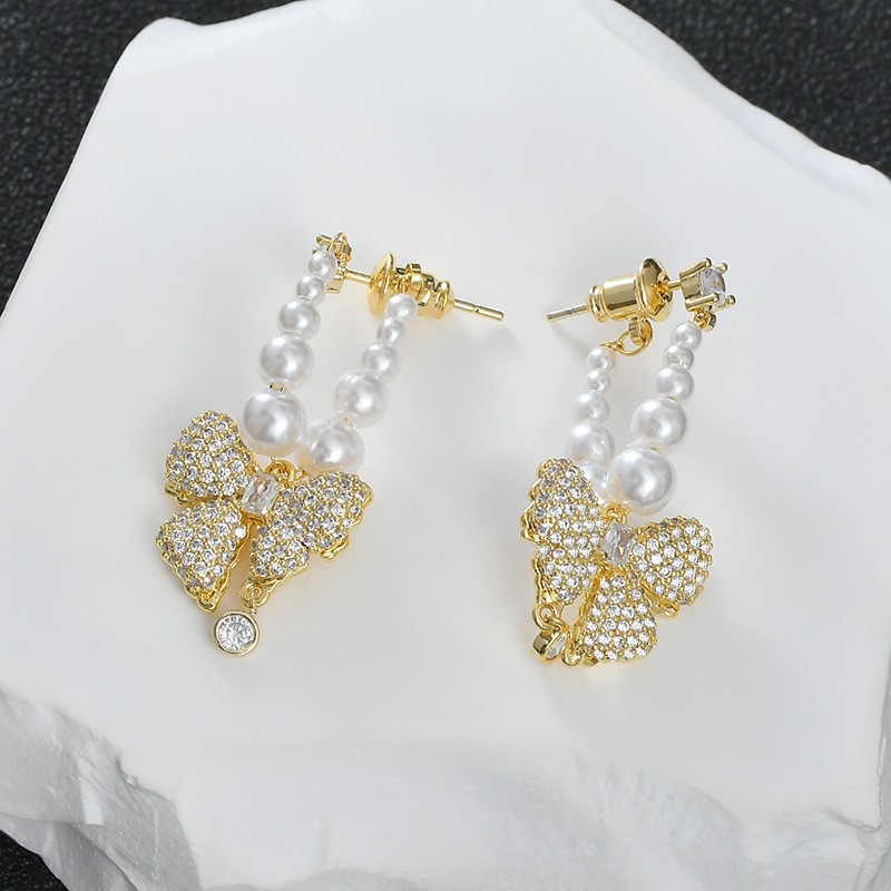 Kolczyki KOKARDY ze stali szlachetnej platerowane 14k złote, perły, sztyft S925 KST3342
