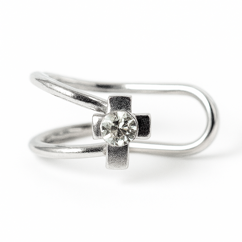 Kolczyki nausznica srebrny krzyżyk cyrkonią K691WZ3S