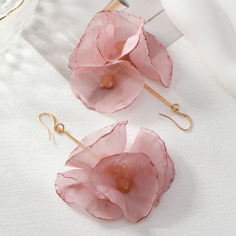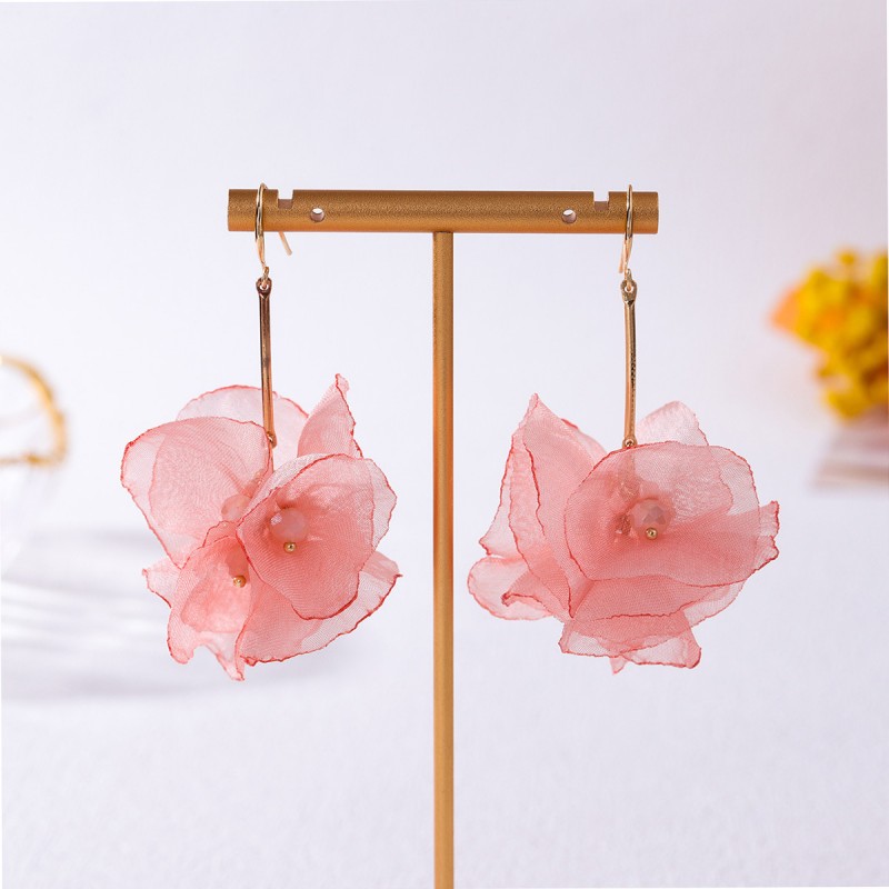 Kolczyki sztuczne tiulowe kwiaty