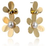 Kolczyki ze stali szlachetnej platerowane 14k złotem KWIATY perły KST3379