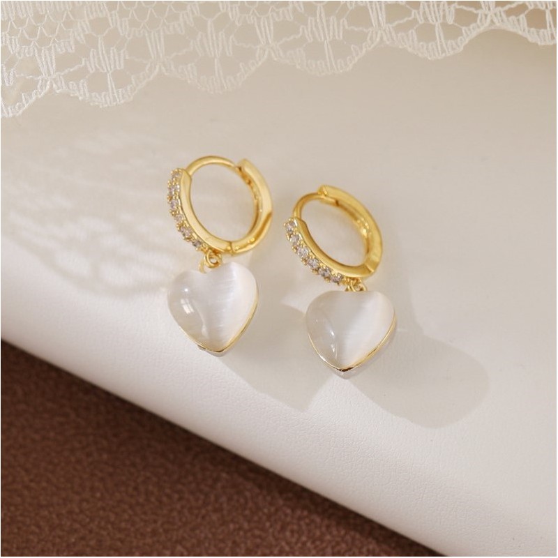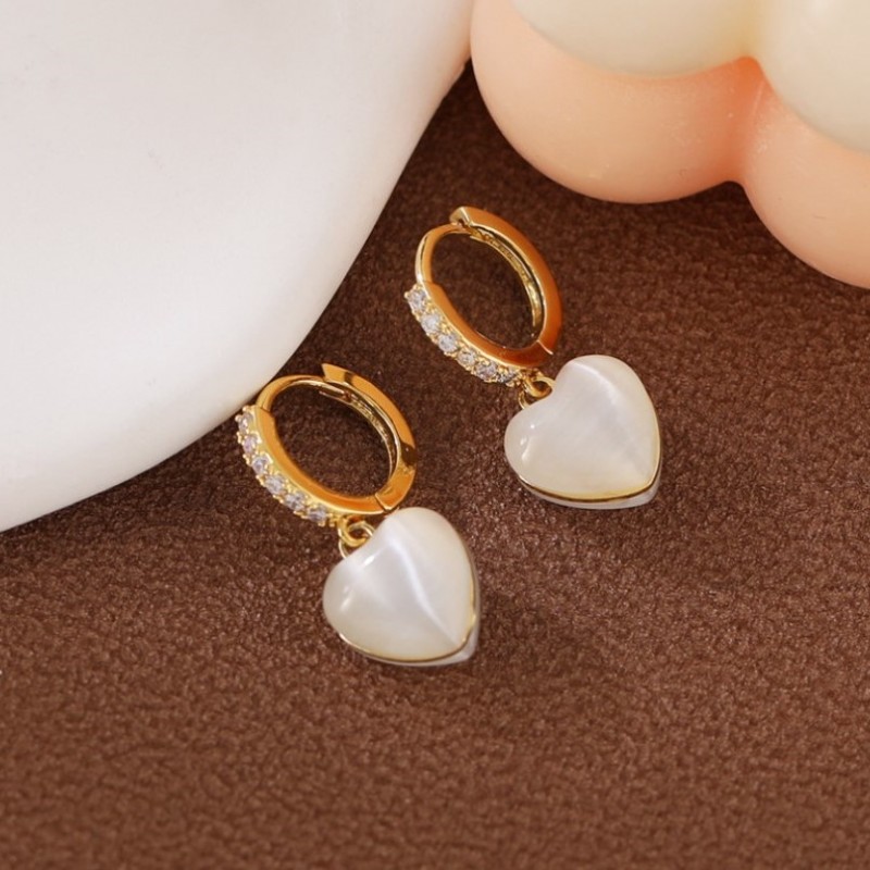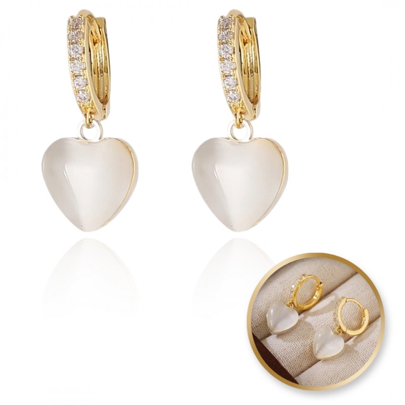 Kolczyki ze stali szlachetnej platerowane 14k złotem, masa perłowa SERCE KST3332