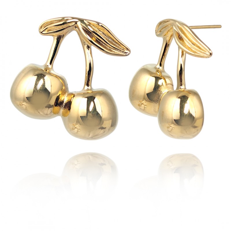 Kolczyki ze stali szlachetnej platerowane 14k złotem WISIENKI KST3356